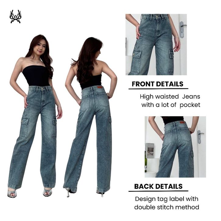WARPATH Celana Jeans Wanita Cargo Highwaist Coolgo 8974 Celana Cargo Wanita Jeans Retro Non Stretch Kekinian