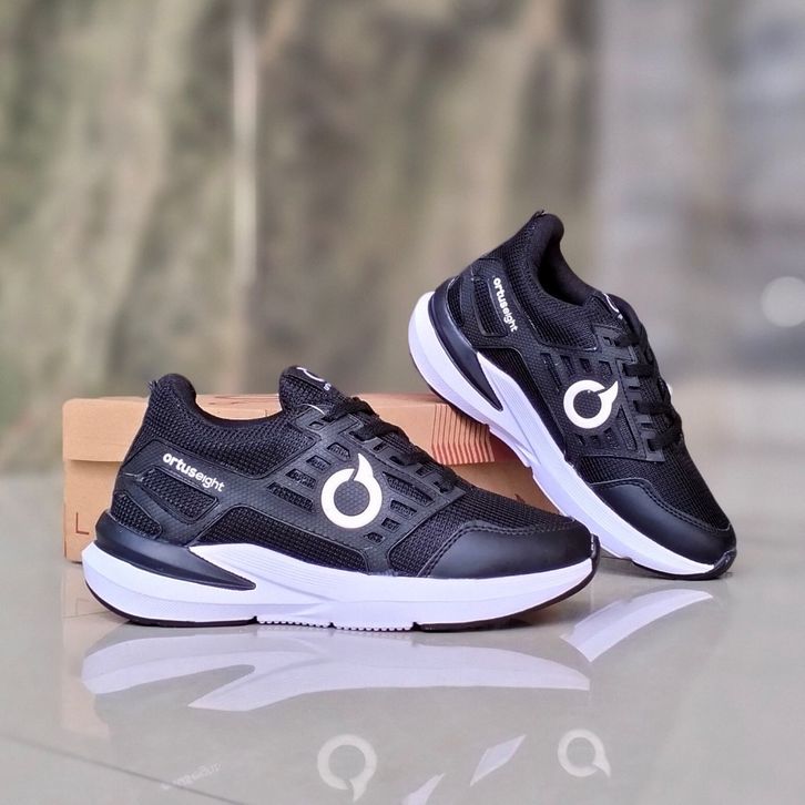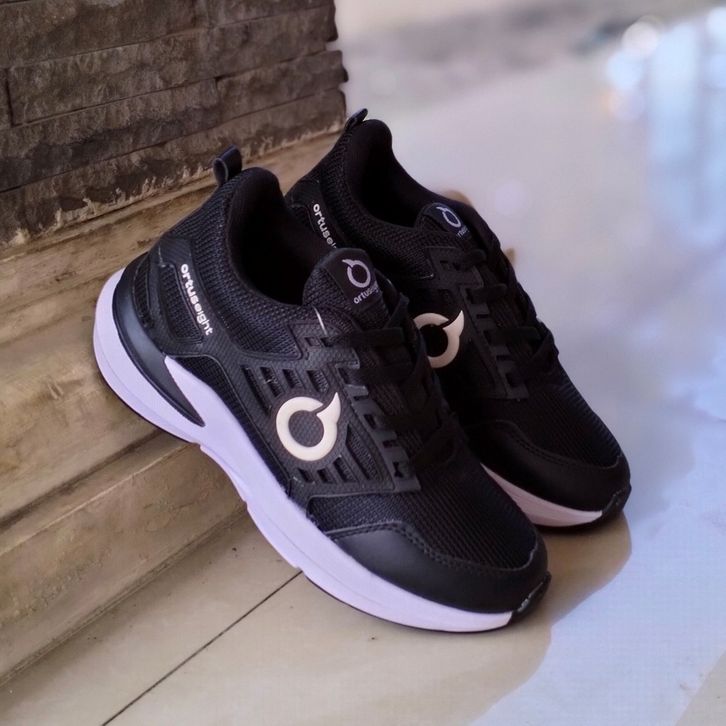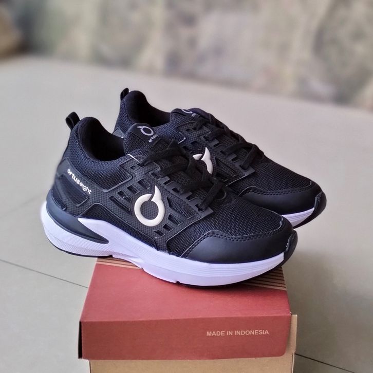 Sepatu Sneaker Olahraga Running Anak Junior 33-37 Laki-Laki Perempuan Hitam Lis Putih Cocok Untuk Sekolah TK SD SMP Nyam