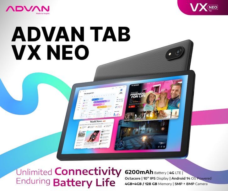 ADVAN TAB VX NEO | DUAL SIM CARD 4G LTE | 4GB+4GB/128GB | 10.1" IPS SCREEN | 6200 MAH | ANDROID 14 | GARANSI RESMI