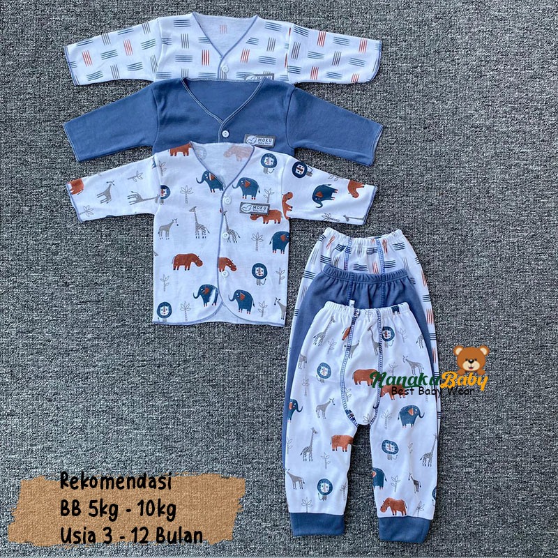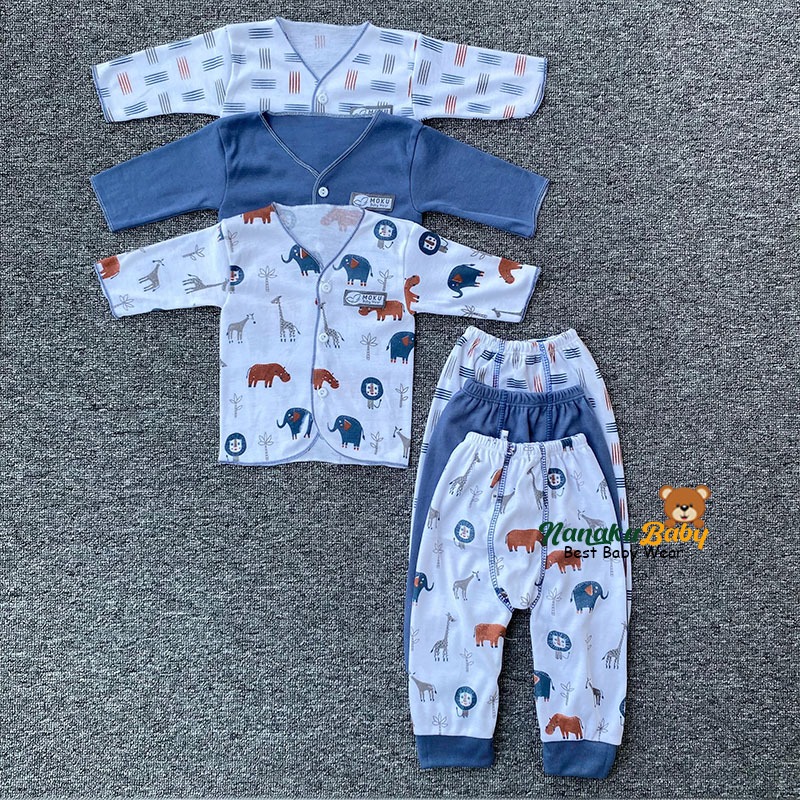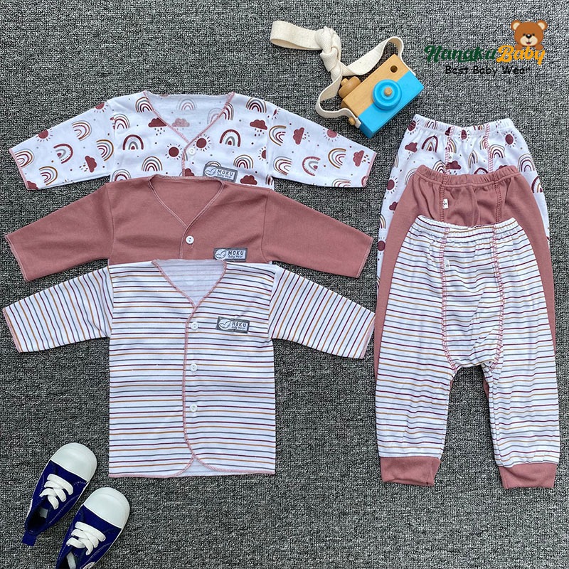 Nanaku Baby - Paket Isi 6 PCS Baju Bayi Newborn / 3 PCS Baju Panjang 3 PCS Celana Panjang Setelan Bayi Baru Lahir Unisex