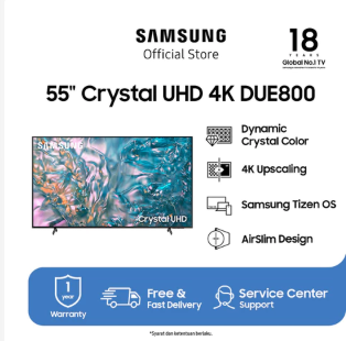 SAMSUNG SMART TV 55 INCH DINAMIC CRYSTAL UHG 4K DUE800 COLOR AIRSLIM DESION GARANSI RESMI BEST SELLER MURAH TANPA DP 0