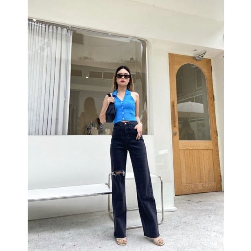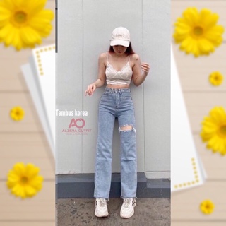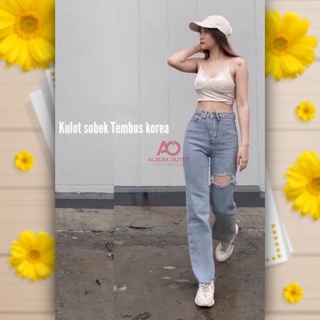(Gratis Ongkir) Highwaist Ripped Jeans Kulot Loose Snowblue Blank 27-34 by Alzera
