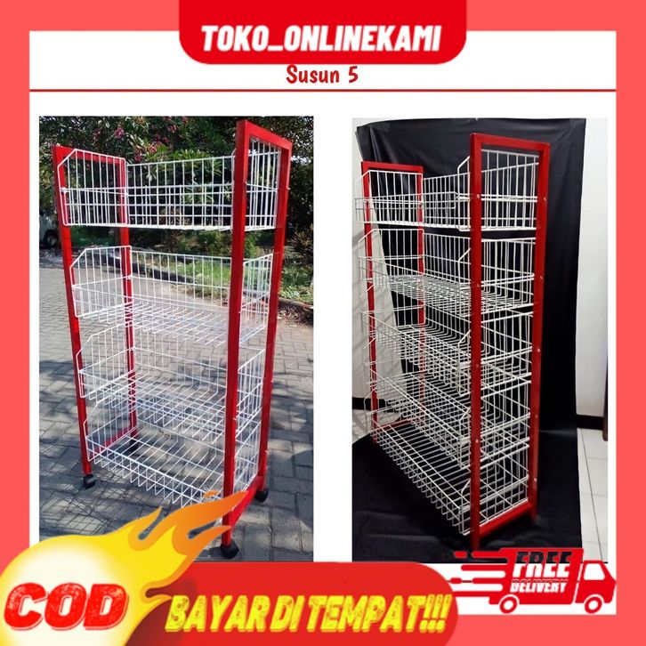 RAK WARUNG SEMBAKO BESI RAK CHIKI SNACK JAJANAN RAK DISPLAY RAK MIKNIMARKET 4&5 SUSUN SERBAGUNA MURAH