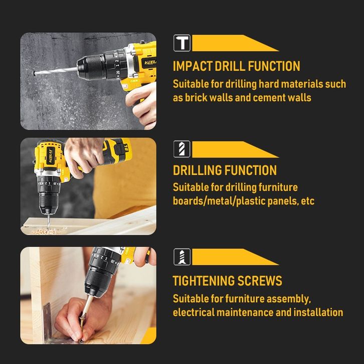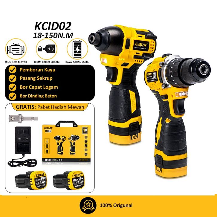 KEELAT-KCID02 2 IN 1 150NM Brushless Cordless Mesin Bor 18V Impact Driver Obeng Listrik