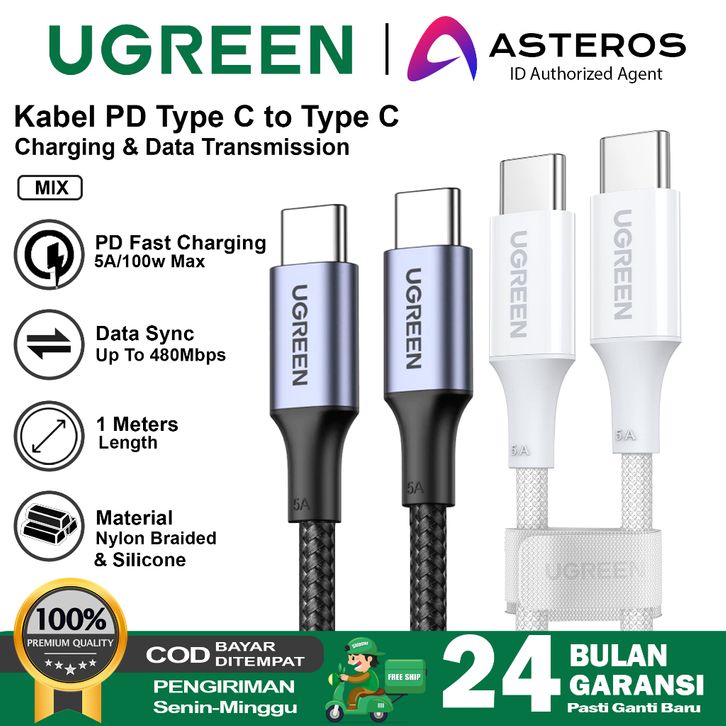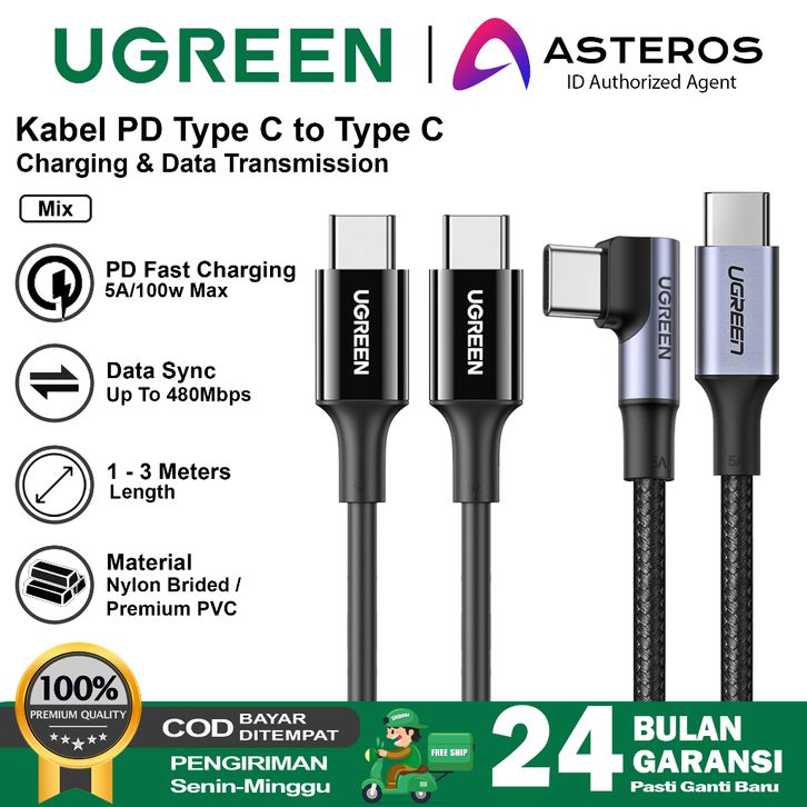 UGREEN KABEL DATA PD TYPE C TO TYPE C FAST CHARGING 3A 5A MAX 100W ORIGINAL - UGREEN OFFICIAL STORE