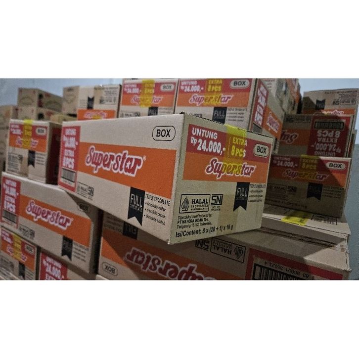 super CTN 8.20.16GR - ROMA WAFER SUPERSTAR BOX 355237/ SUPER STAR TRIPLE COKLAT / MAYORA KARTON ISI 8BOX