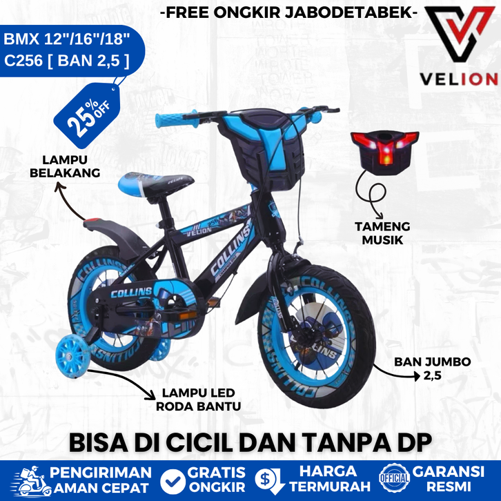 TANPA DP VELION C256 Sepeda Bmx Ban Jumbo 12/16/18 Inch Anak Laki Laki Perempuan 7 10 Tahun Roda 3 Tiga Inter Bike