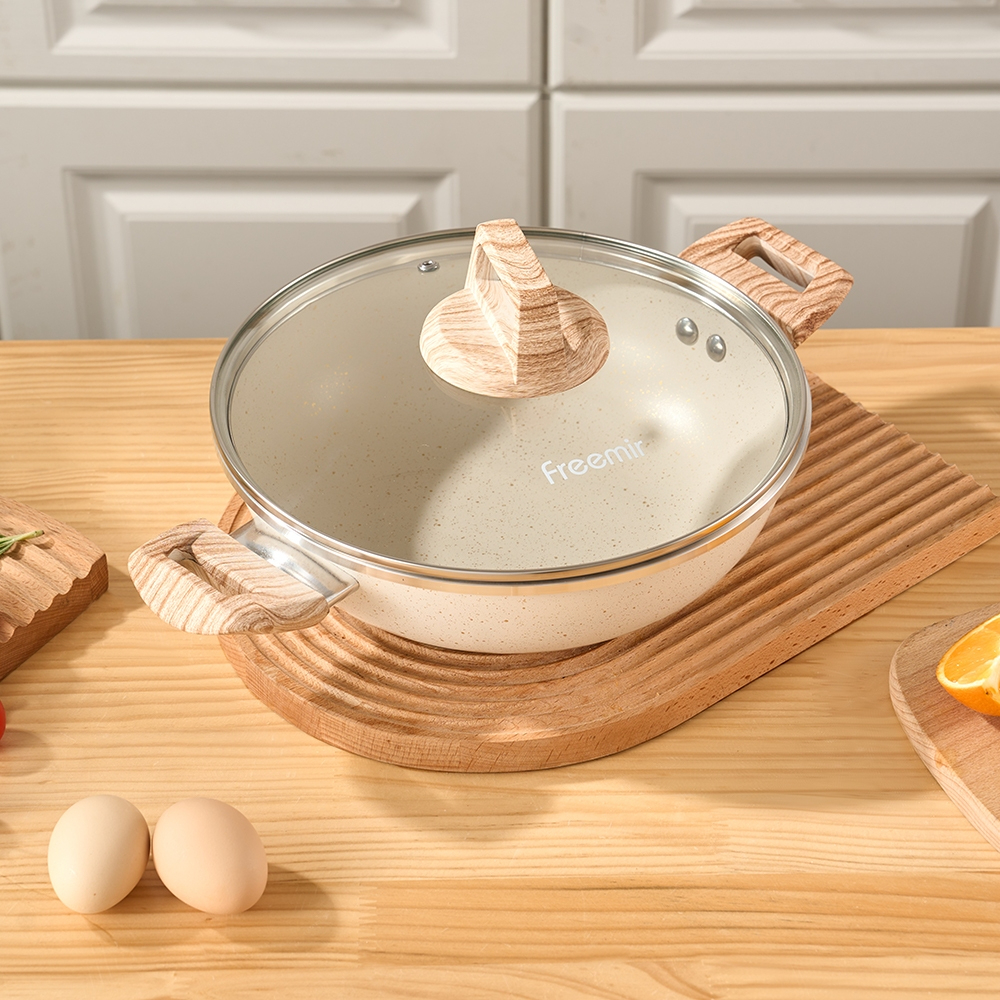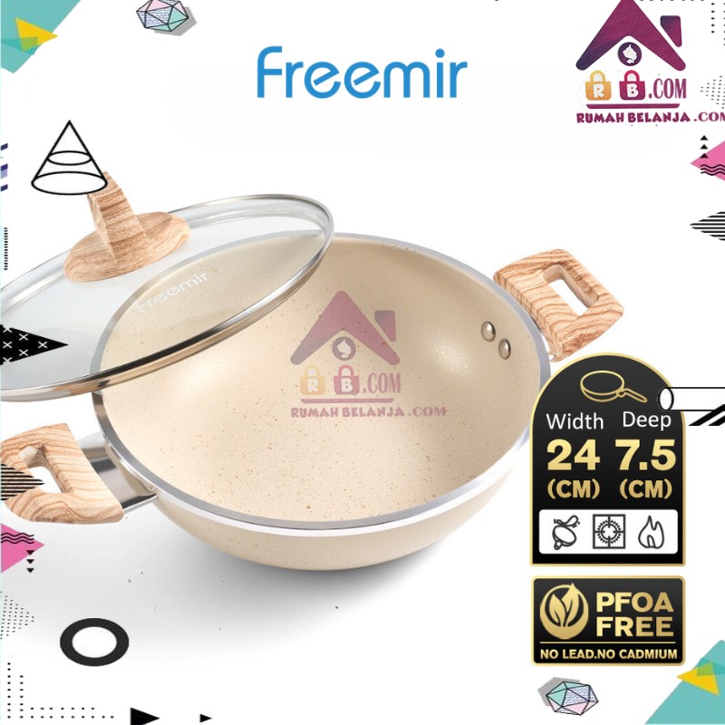 [SPECIAL] freemir Panci Kuping Beige & Hitam 24 Cm Anti Lengket Tanpa Minyak Premium Tutup Kaca Tebal