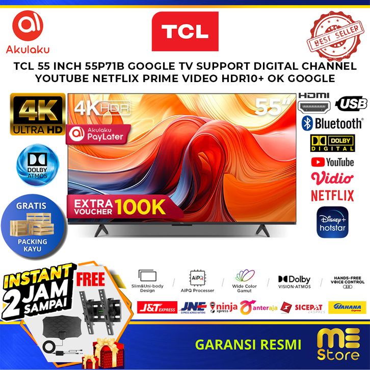 TCL 55" 4K UHD QLED Google AI TV T-Screen Dolby Atmos HDR10+ 55T6C 120Hz DVB-T2 OK PLAYSTORE NETFLIX VIDIO DISNEY+