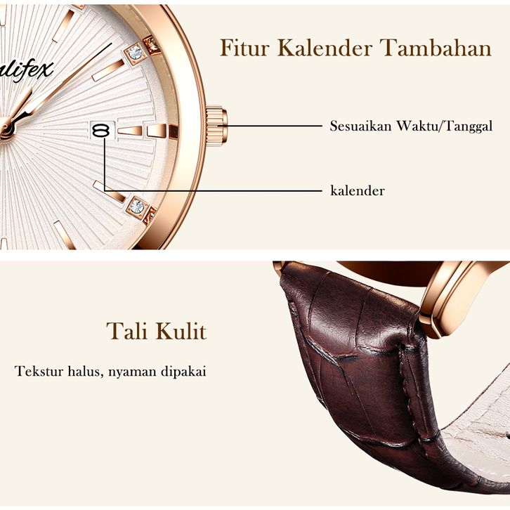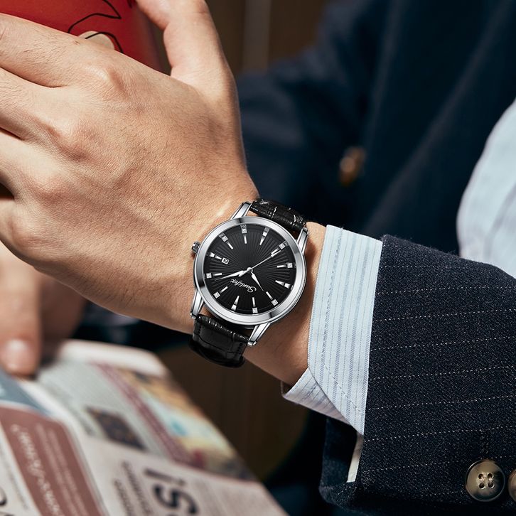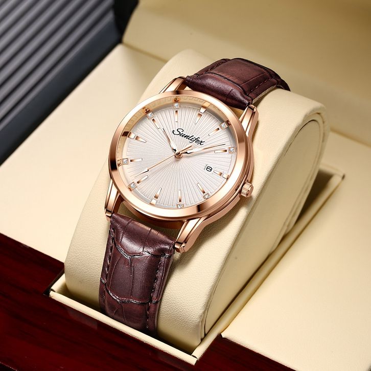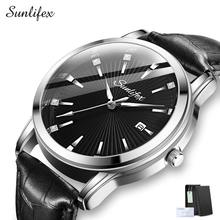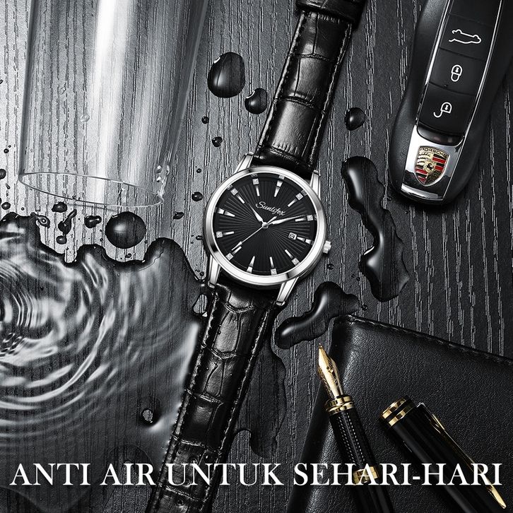 Sunlifex Jam Tangan Pria Kuarsa Anti Air Pria Tali Kulit Bisnis Mode Kalender Jam Tangan Cowok FREE ONGKIR