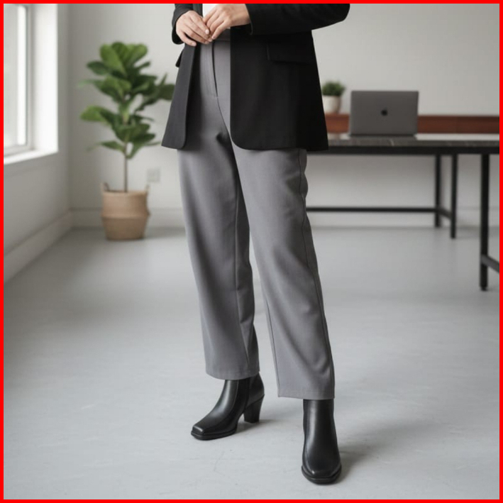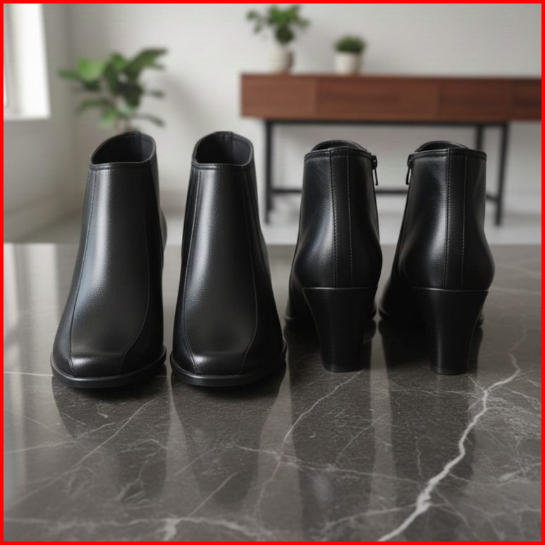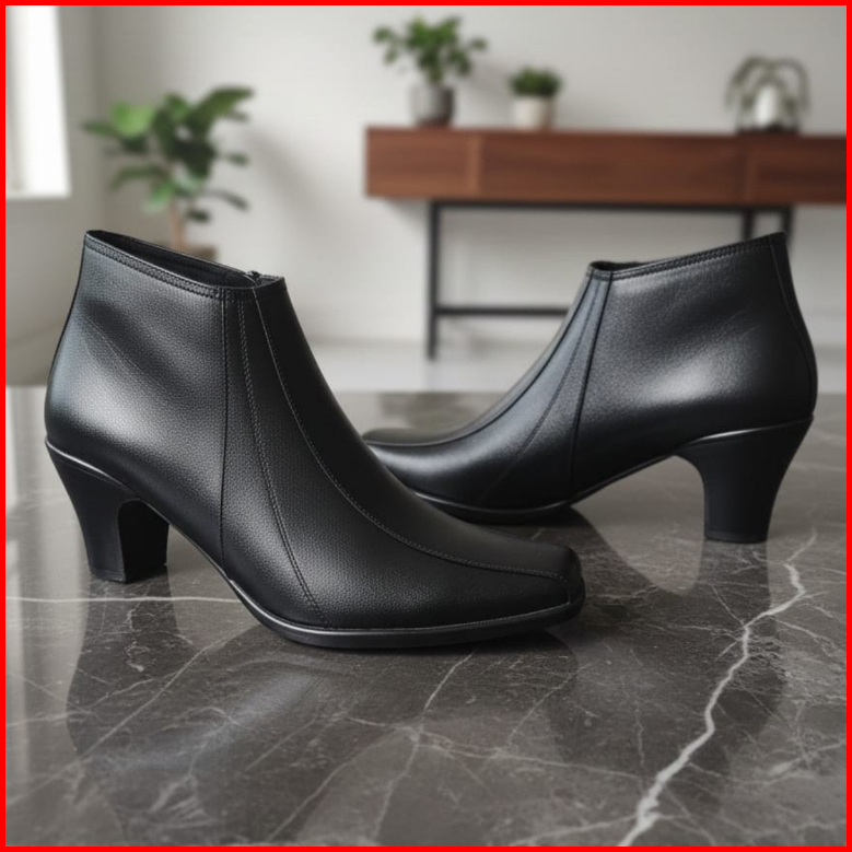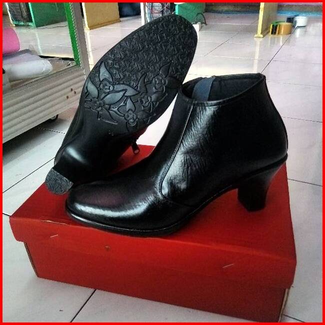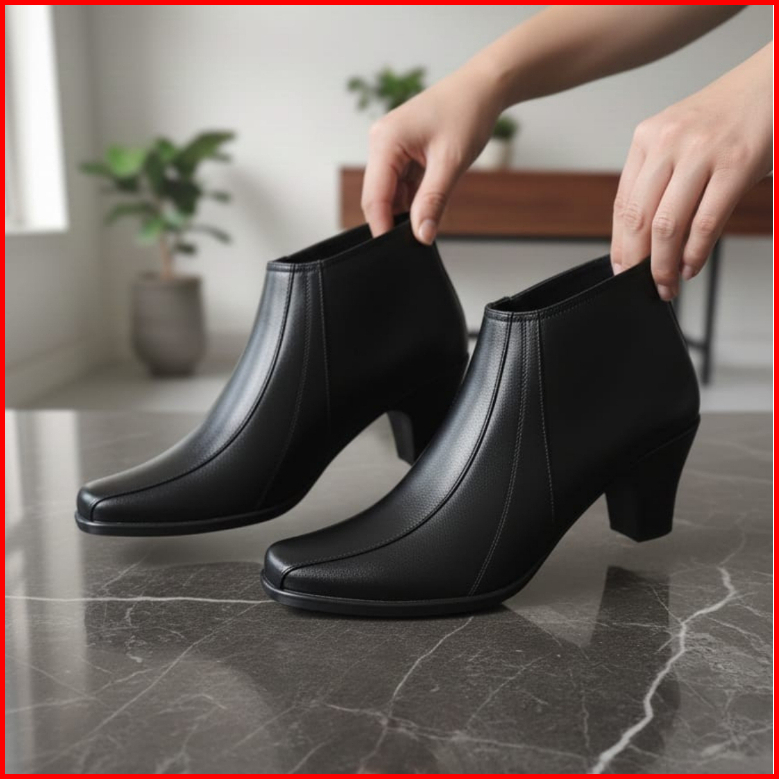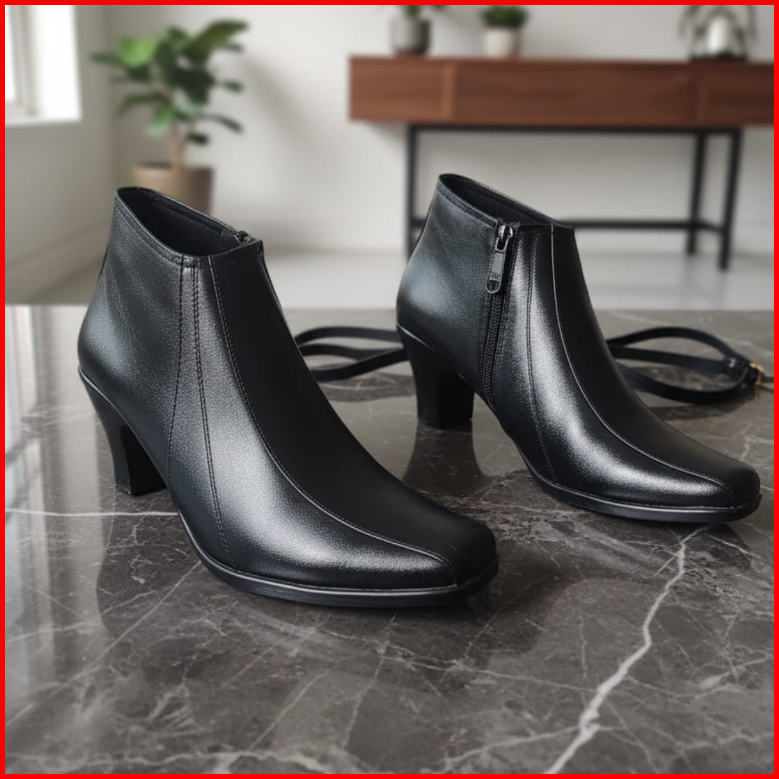 Sepatu Boot Wanita Hitam Hak Sedang 7 Cm Pdh Kerja Kantor Formal Kulit Sintetis Elegan