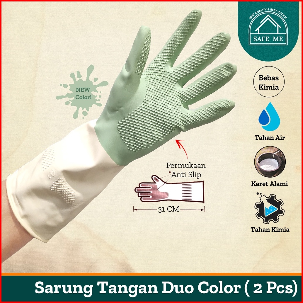Sarung Tangan Latex Karet House Hold Gloves Duo Color Light Green Antislip
