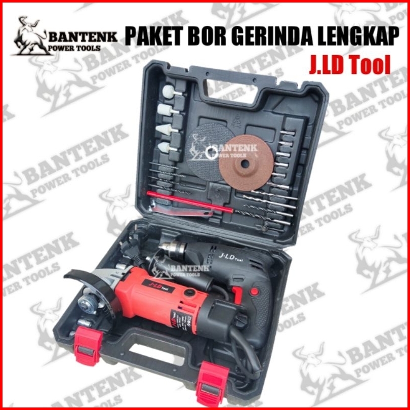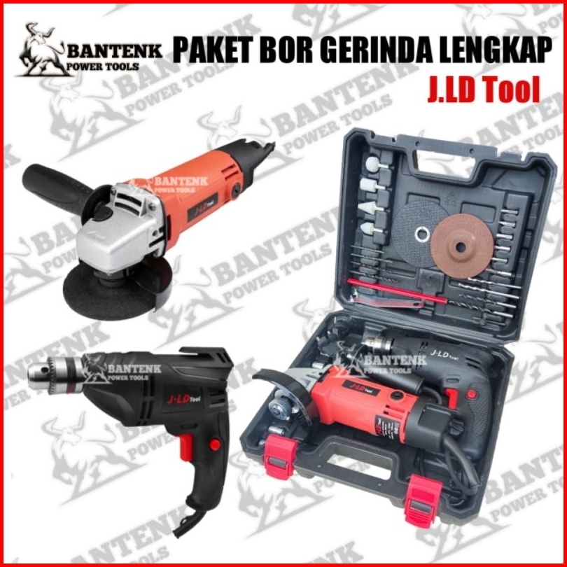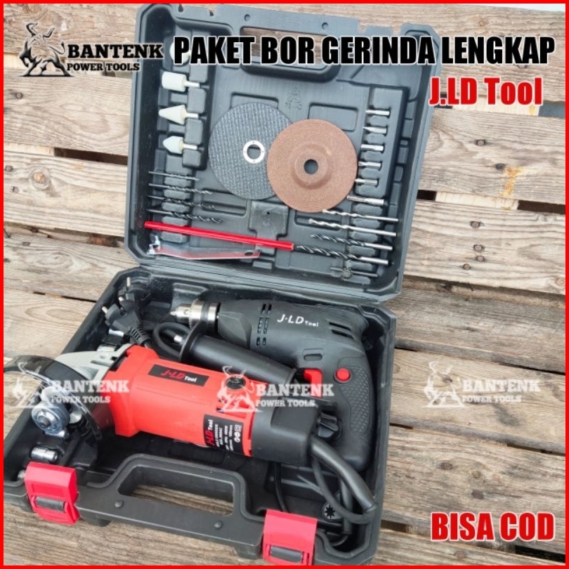 Jld Tool. Paket Koper Isi Bor Dan Gerinda. Mesin Bor Bolak Balik 10mm 10-3 Dan Gurinda 4 Inch 9954c Lengkap Dengan Akses