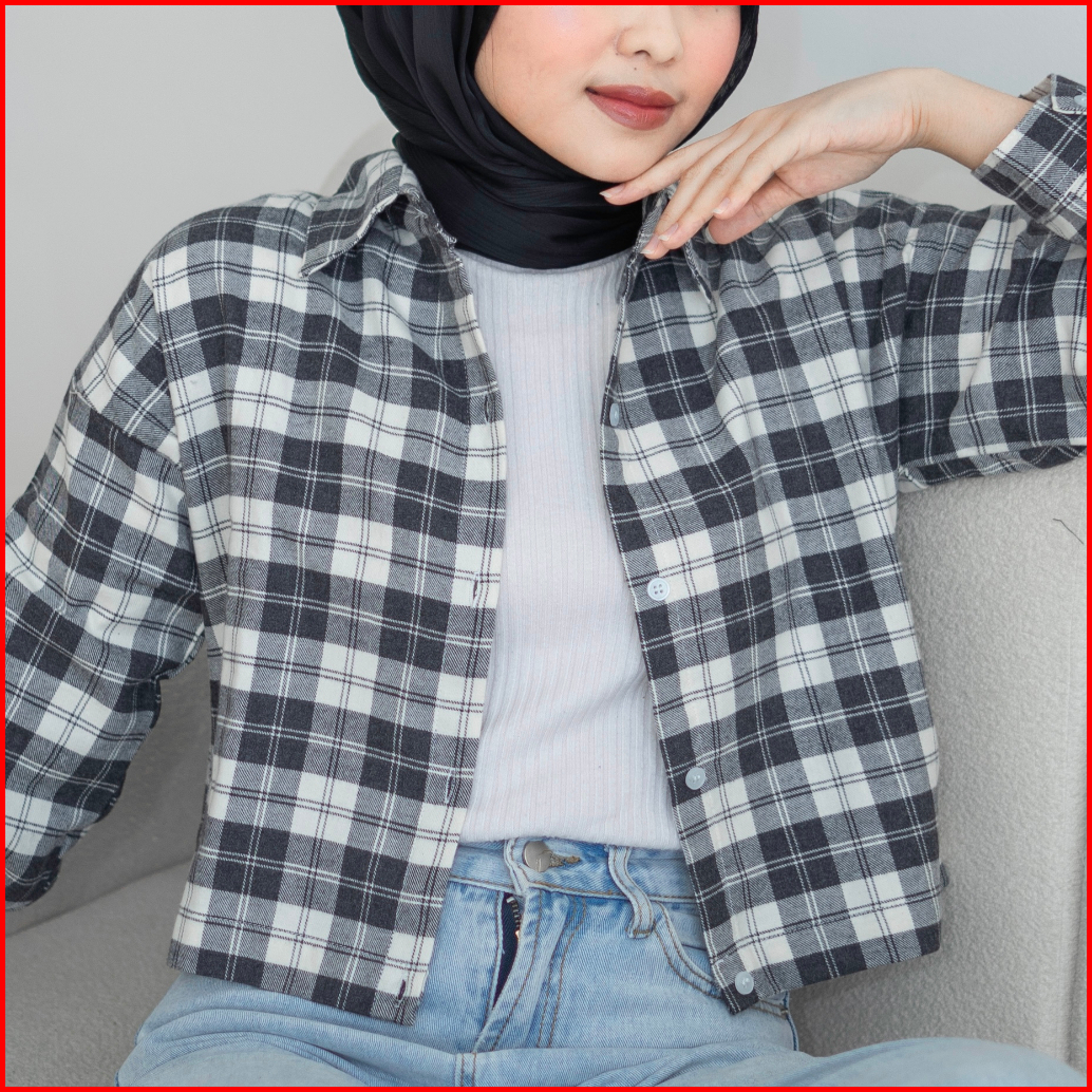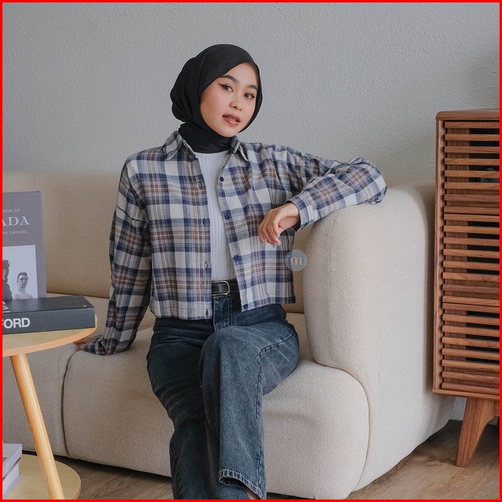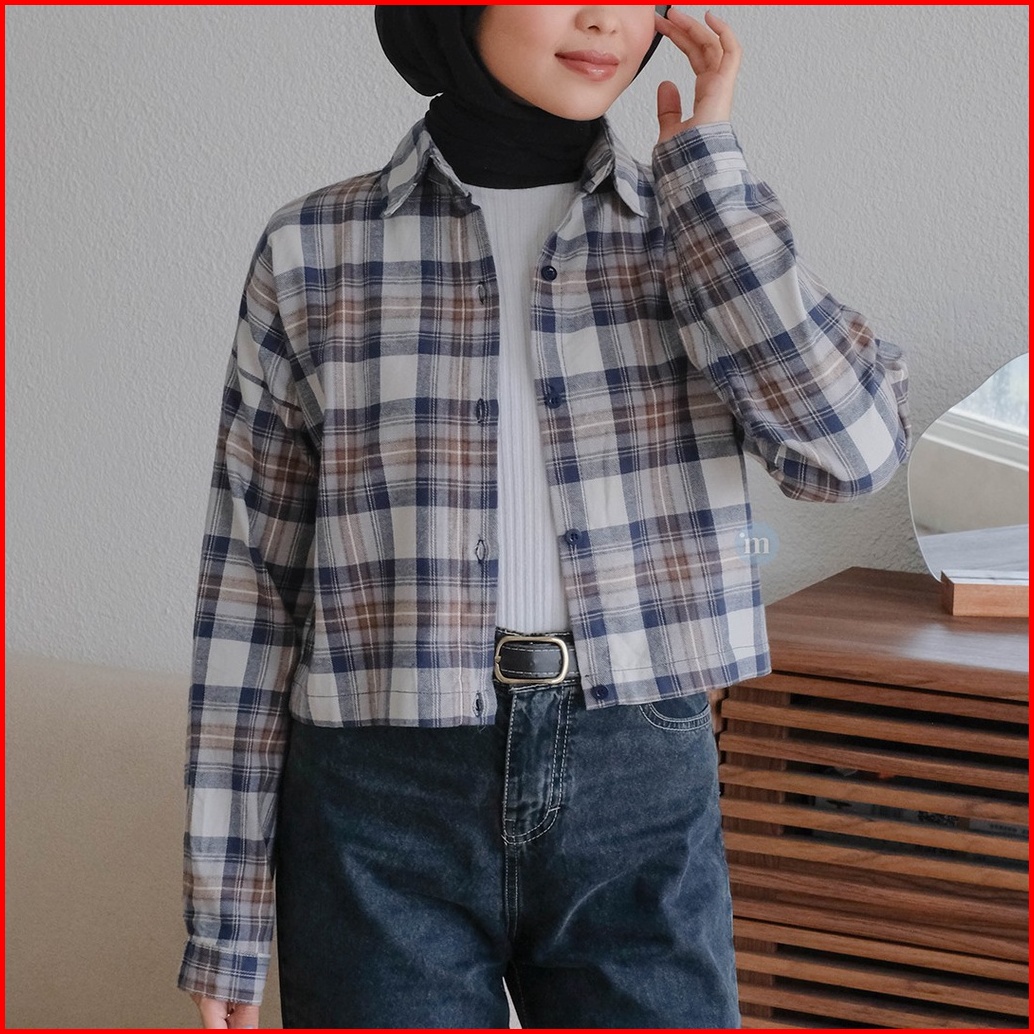 Yoori Kemeja Flanel Wanita Atasan Crop Kotak-kotak Cewek Cropped Flannel Shirt Maru