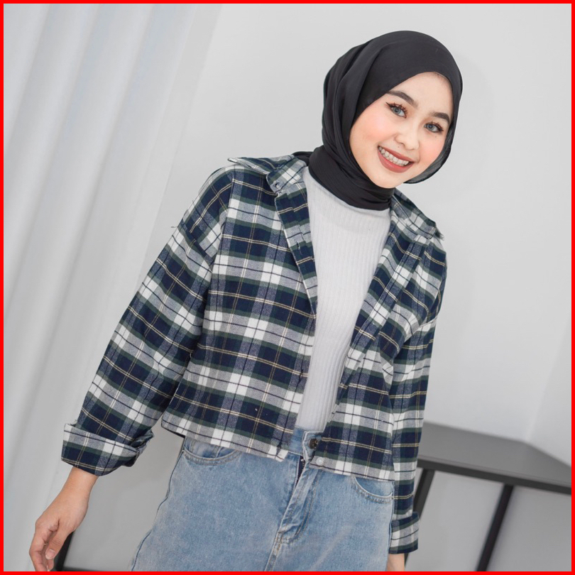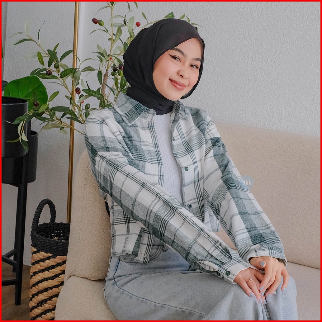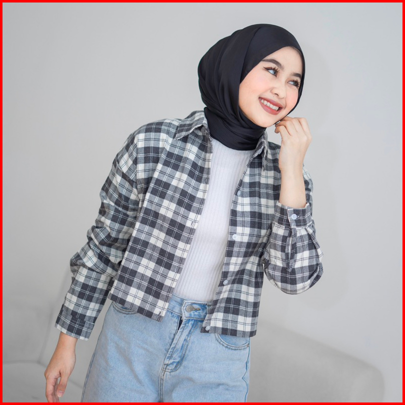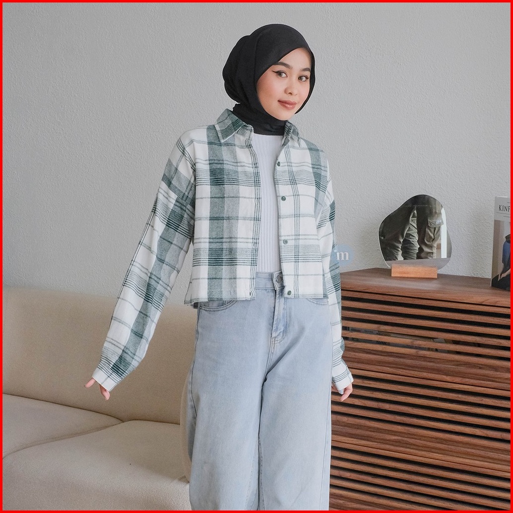 Yoori Kemeja Flanel Wanita Atasan Crop Kotak-kotak Cewek Cropped Flannel Shirt Maru