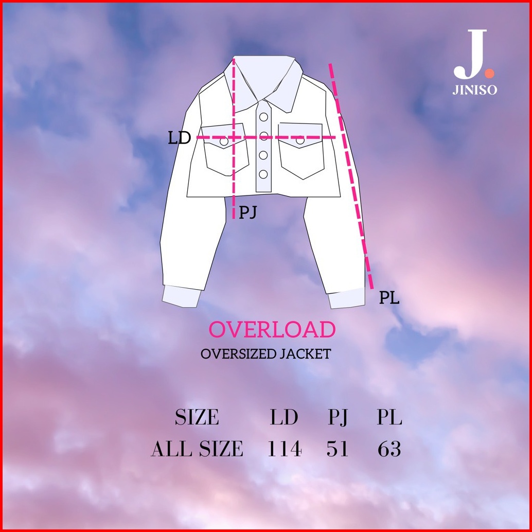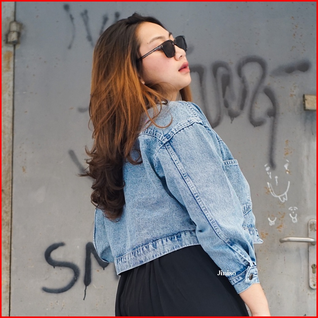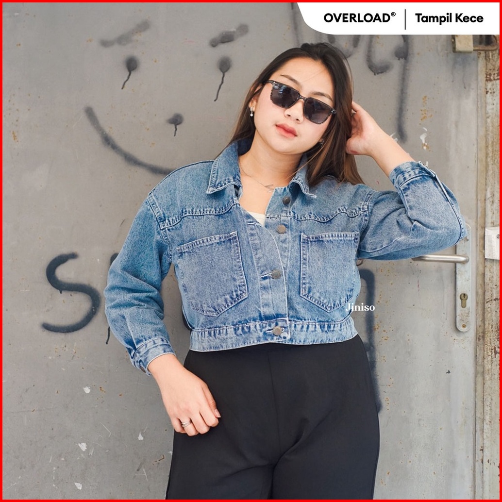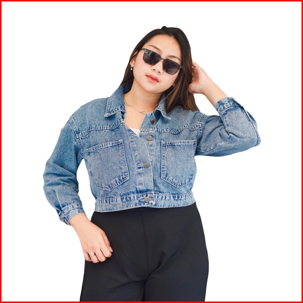 Jiniso Big Size Jaket Crop Jeans Oversize Pocket Blue Acid