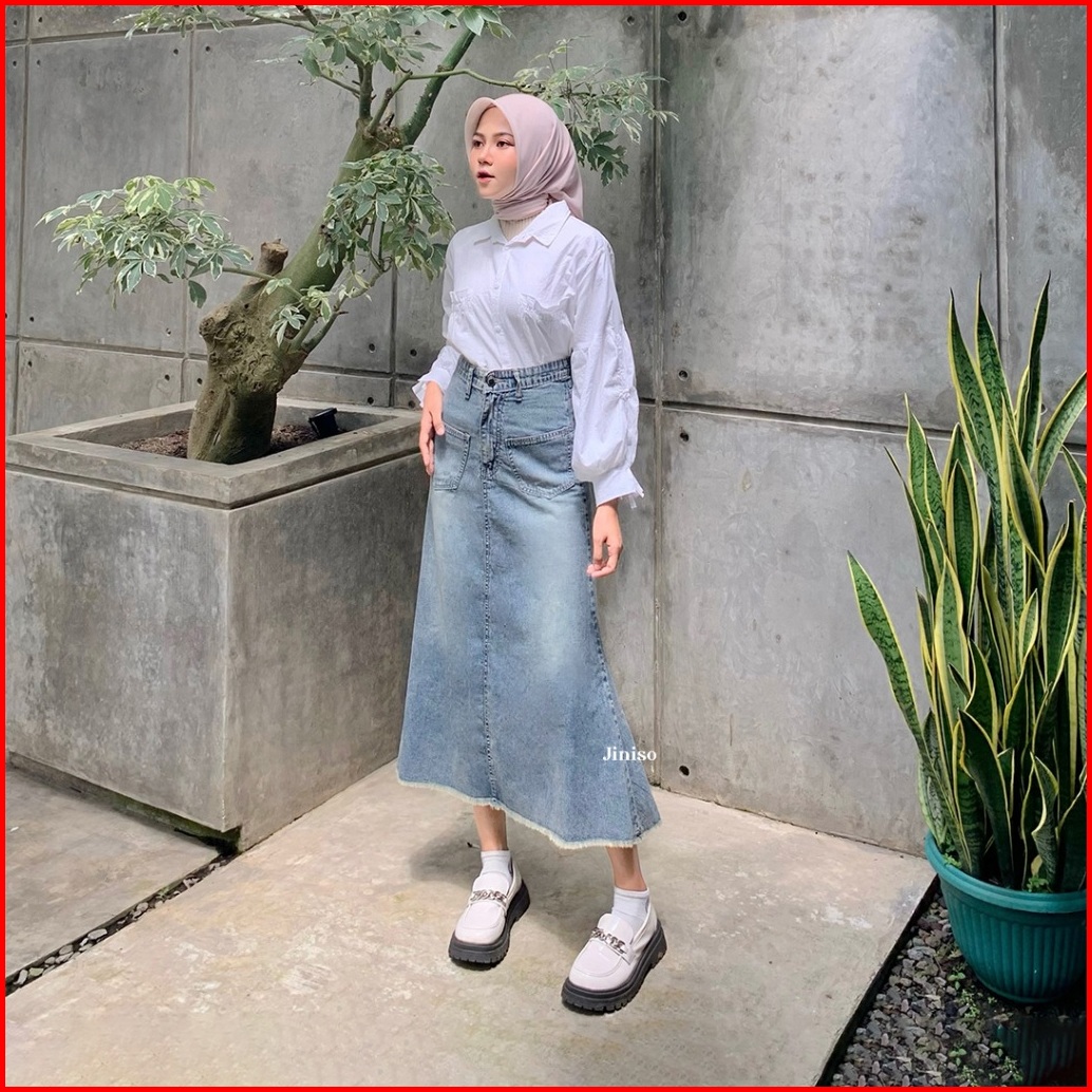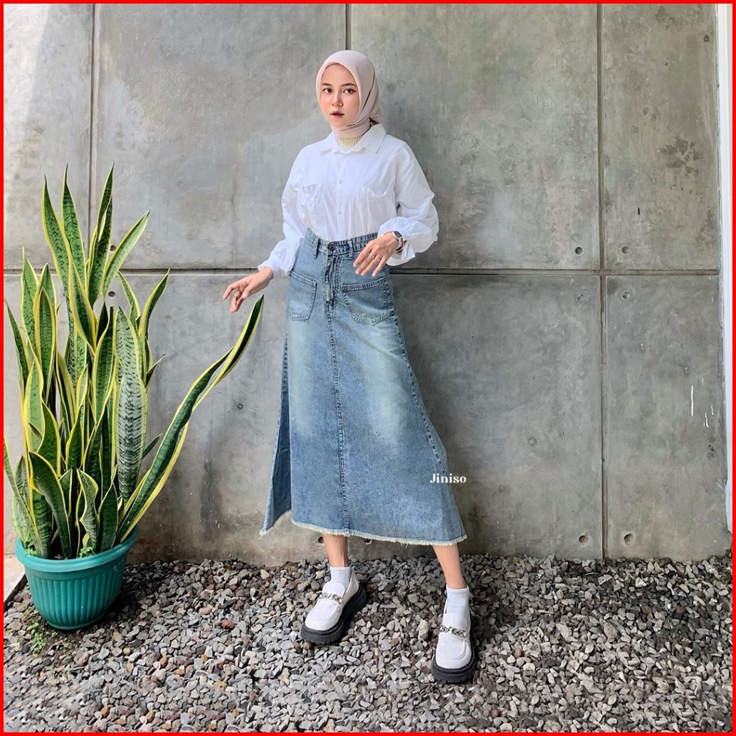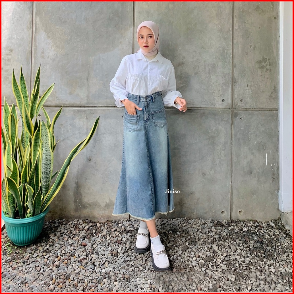 Jiniso - Highwaist Rok Mermaid Jeans Panjang 906 Seventy