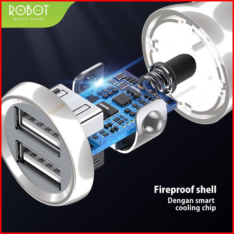 Robot Rt-c07 Car Charger Colokan Mobil - 2 Port Usb - Free Kabel Micro Usb - Garansi Resmi 1 Tahun