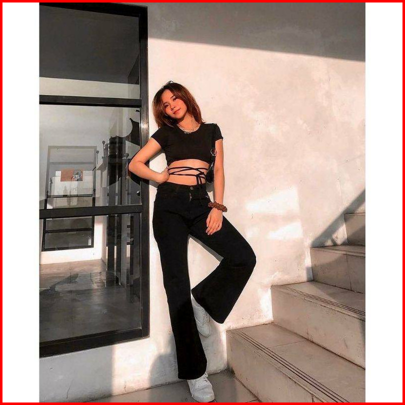Celana Jeans Cutbray Wanita Kekinian Highwaist Cutbray Jeans Stretch Bahan Melar 27-34