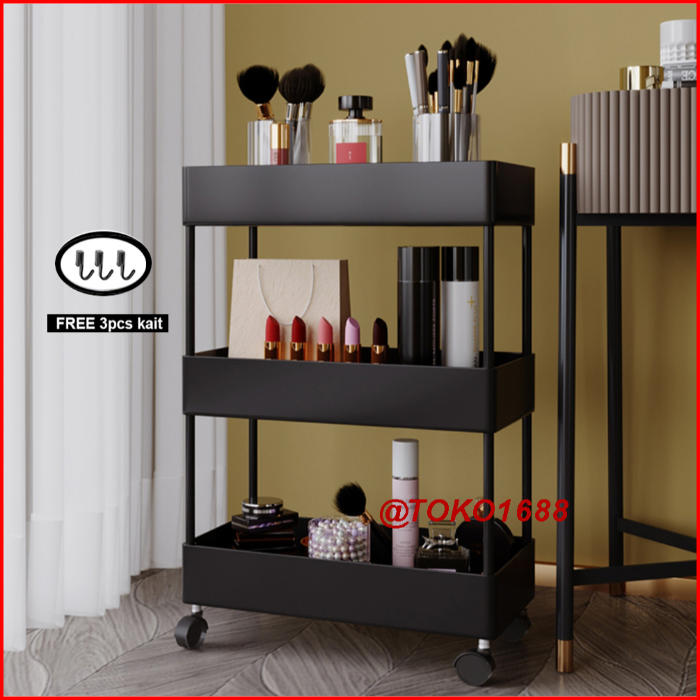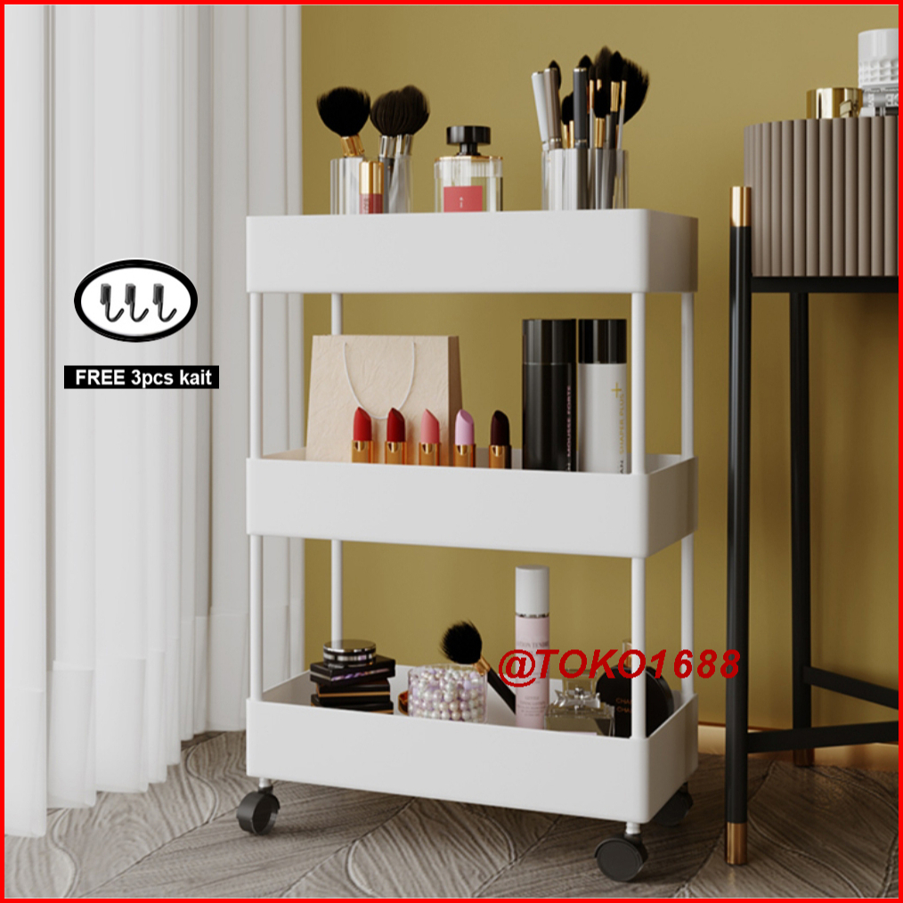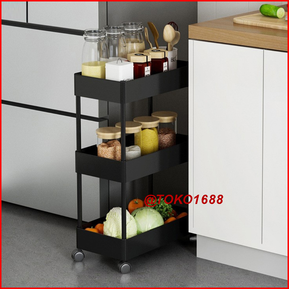 Square Rak Dapur Rak Serbaguna Rak Troli Rak Kamar Mandi 3 Tingkat Dengan Roda