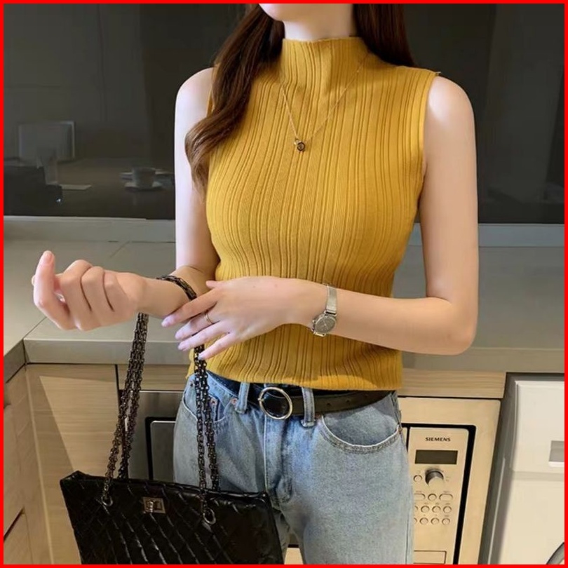 Inner Rajut Lidya Knit Tanktop Wanita Inner Atasan Rajut Tanpa Lengan Premium