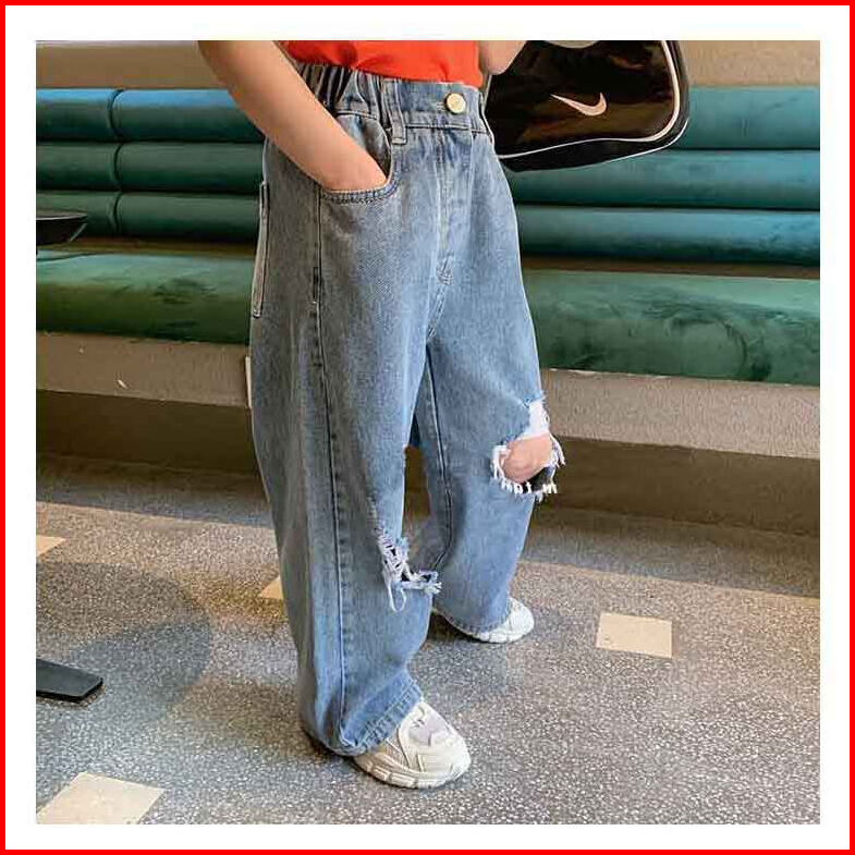 507243 - Celana Kulot Jeans Sobek Anak Perempuan - Motif Ripped Jeans