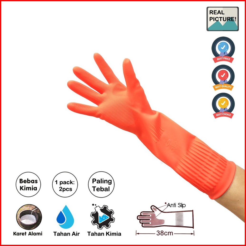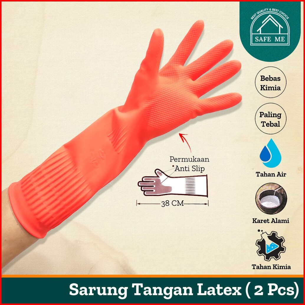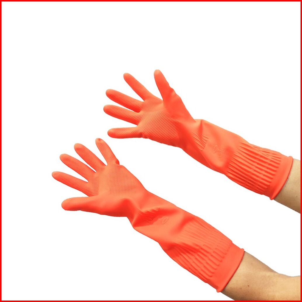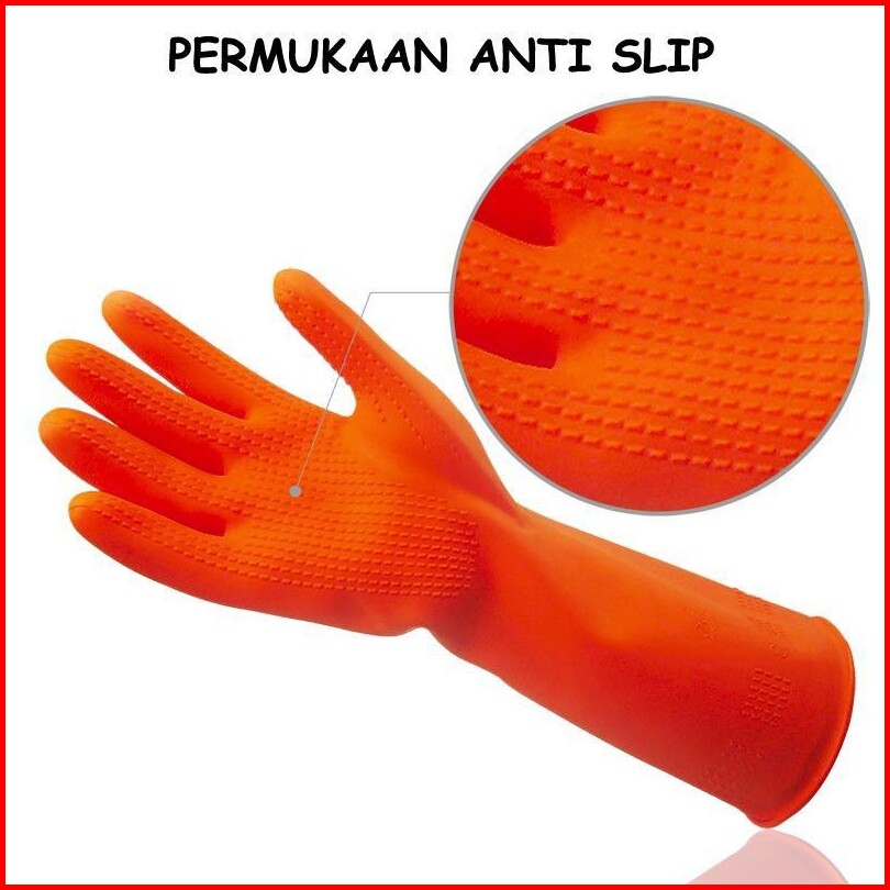 Sarung Tangan Karet Latex House Hold Gloves Orange Safe Me Panjang Dan Tebal