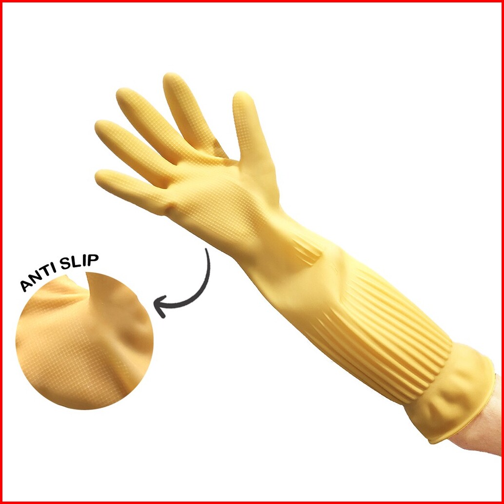 Sarung Tangan Latex Karet House Hold Gloves Yellow Panjang Dan Tebal Industrial Gloves Latex