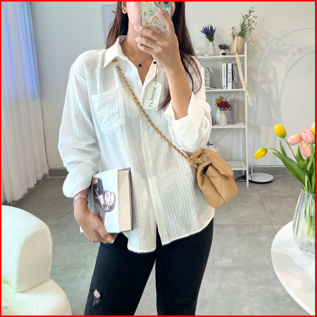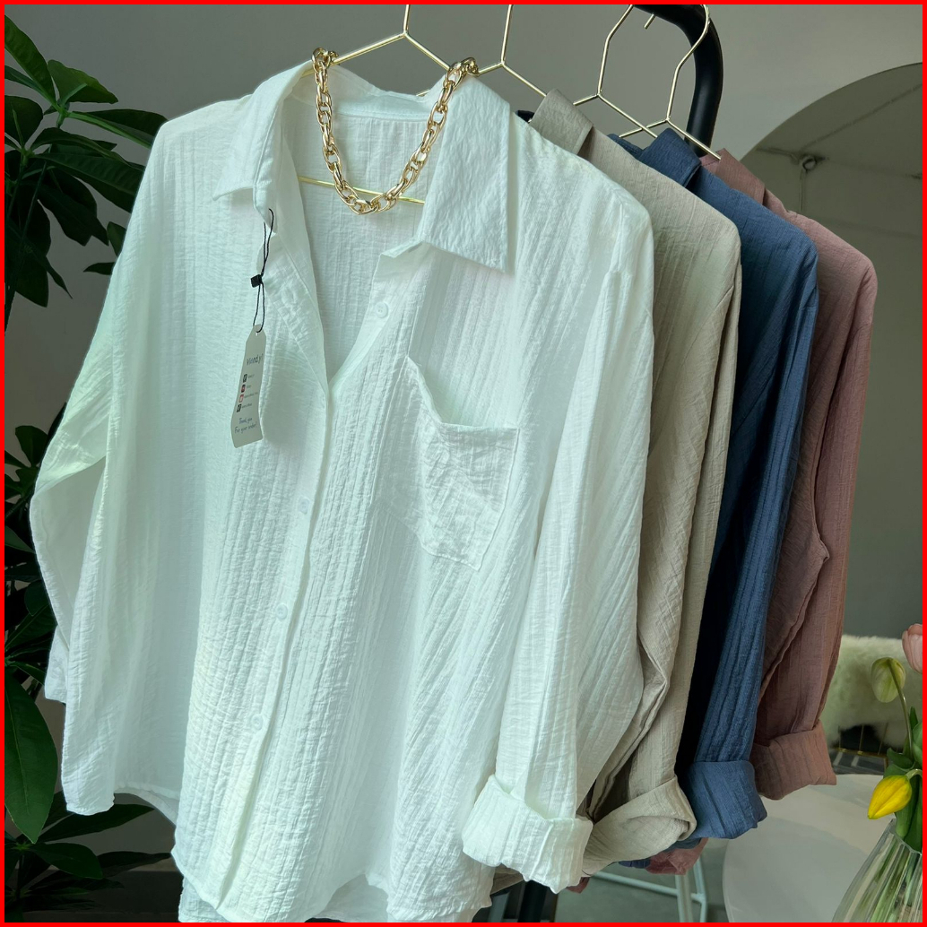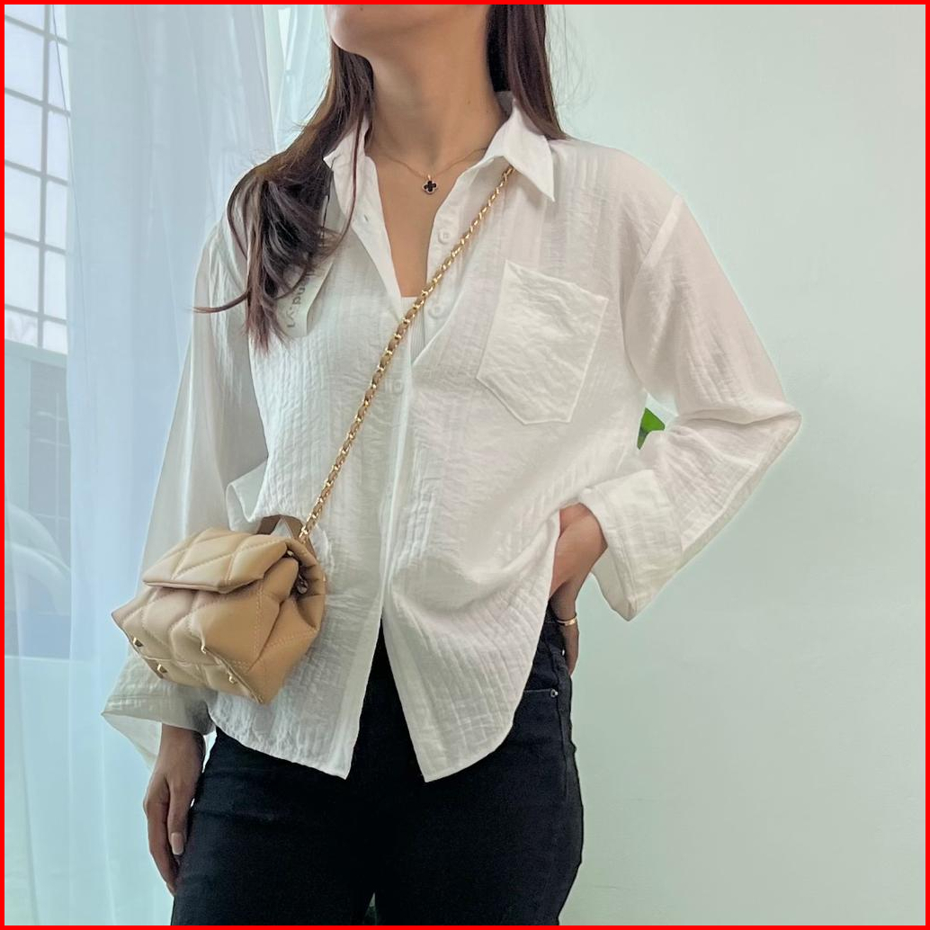 Blouse Lengan Panjang Atasan Wanita Kantong Korea Kemeja Pocket Cewek Terbaru E.74