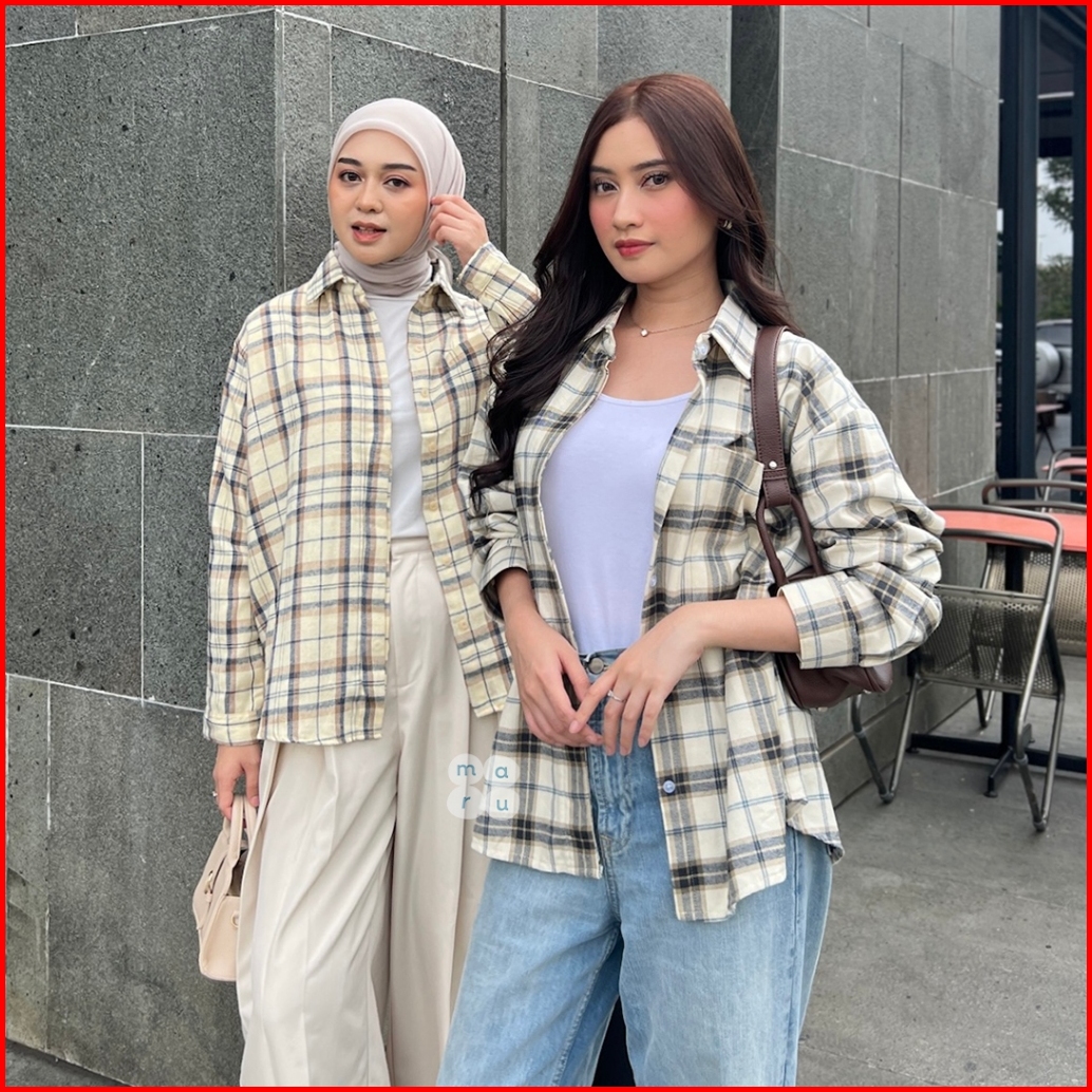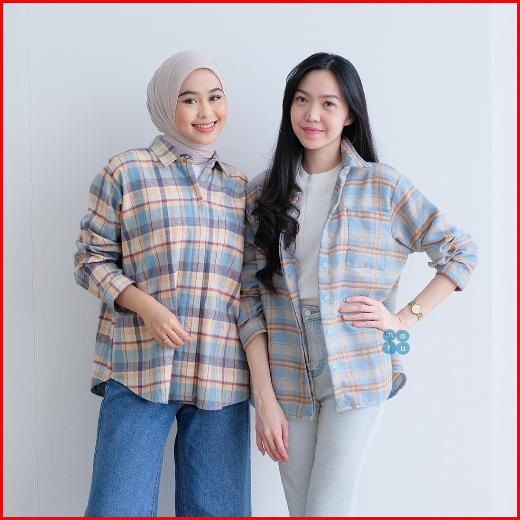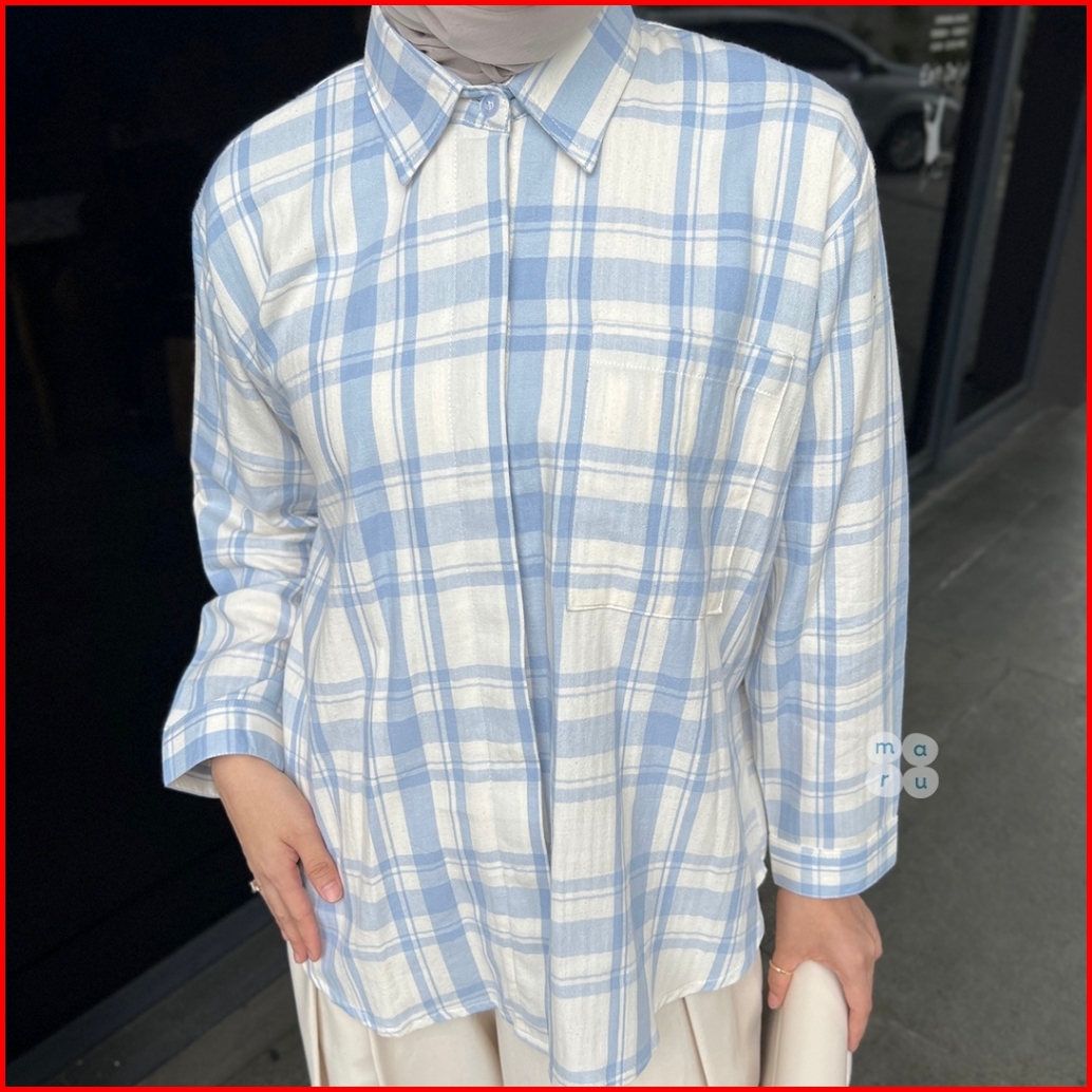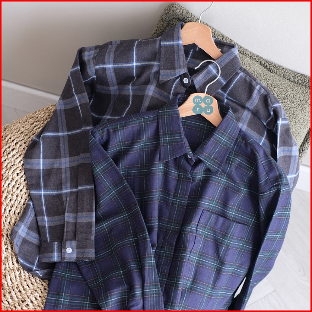 Samsan Flannel Shirt Maru Dailywear Kemeja Flanel Wanita Kotak Kotak Lengan Panjang Hijab Atasan