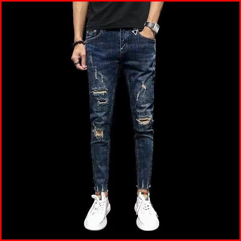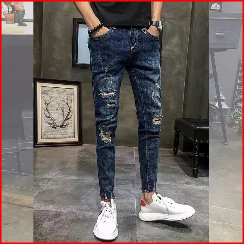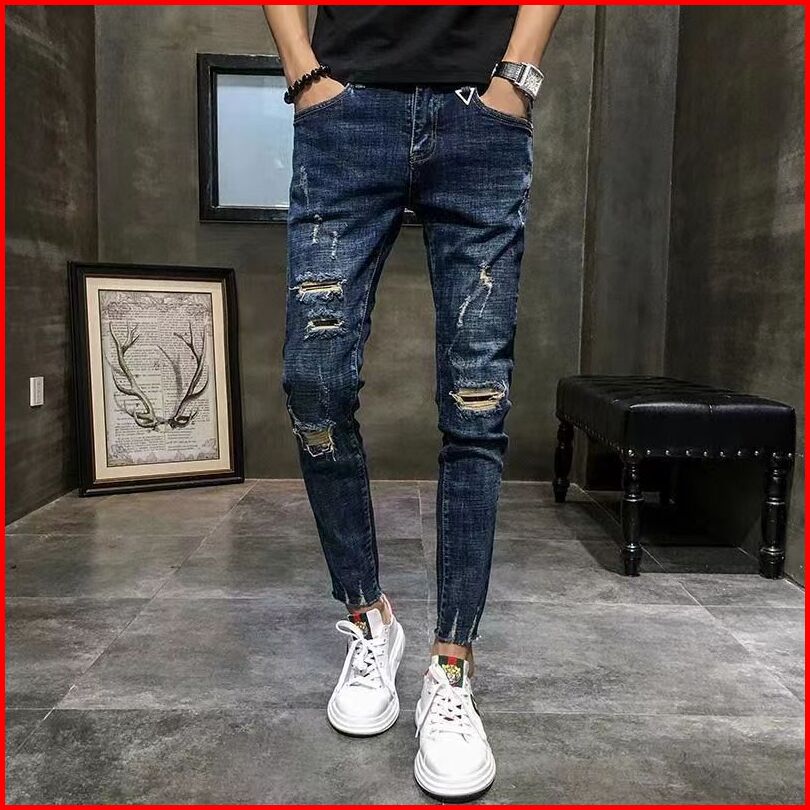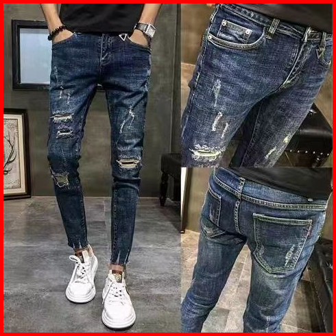 Ootd Korean Style Celana Jeans Slim Fit Pria Celana Ripped Jeans Pria Celana Jeans Robek Pria Celana Panjang Pria Dewasa