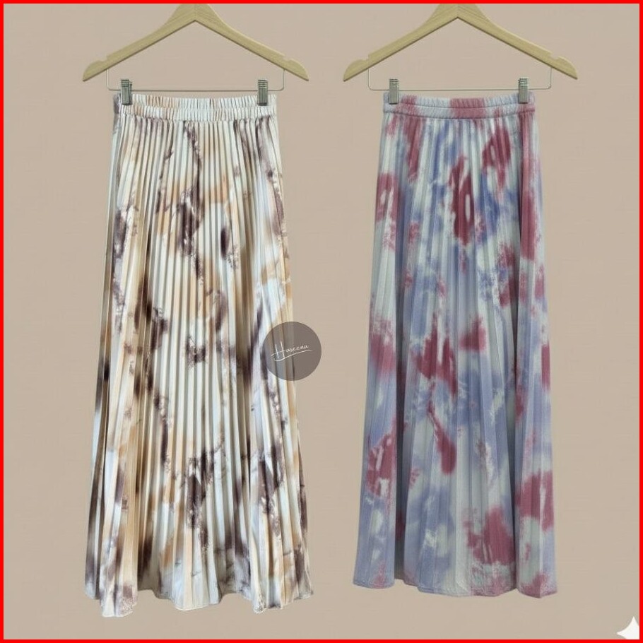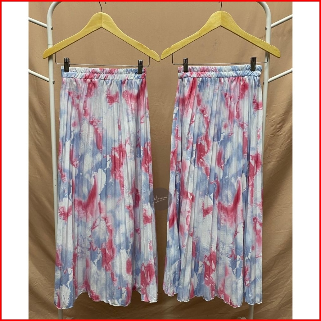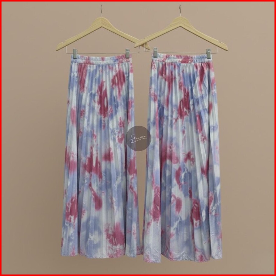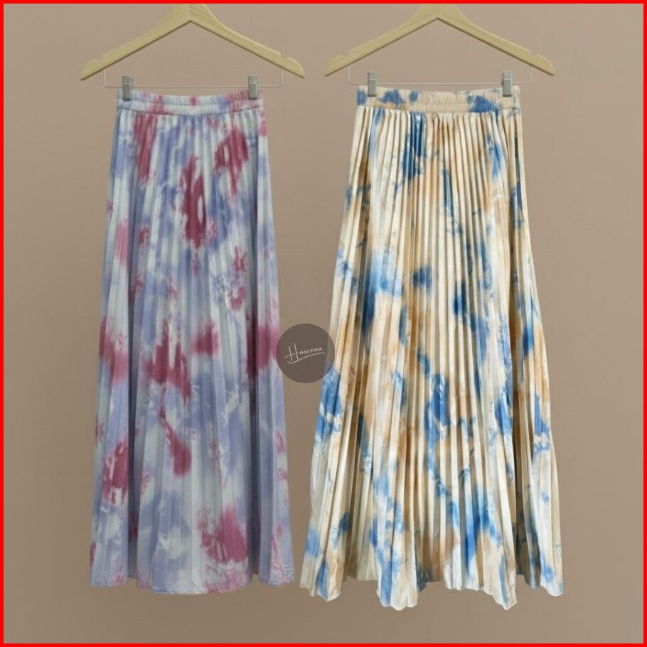 Limited Sale Haseena Bundling Deal Rok Plisket Marble Ceisya Tie Dye Skirt Free Stocking Hitam