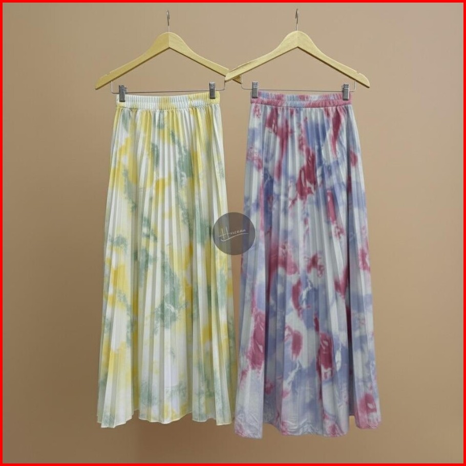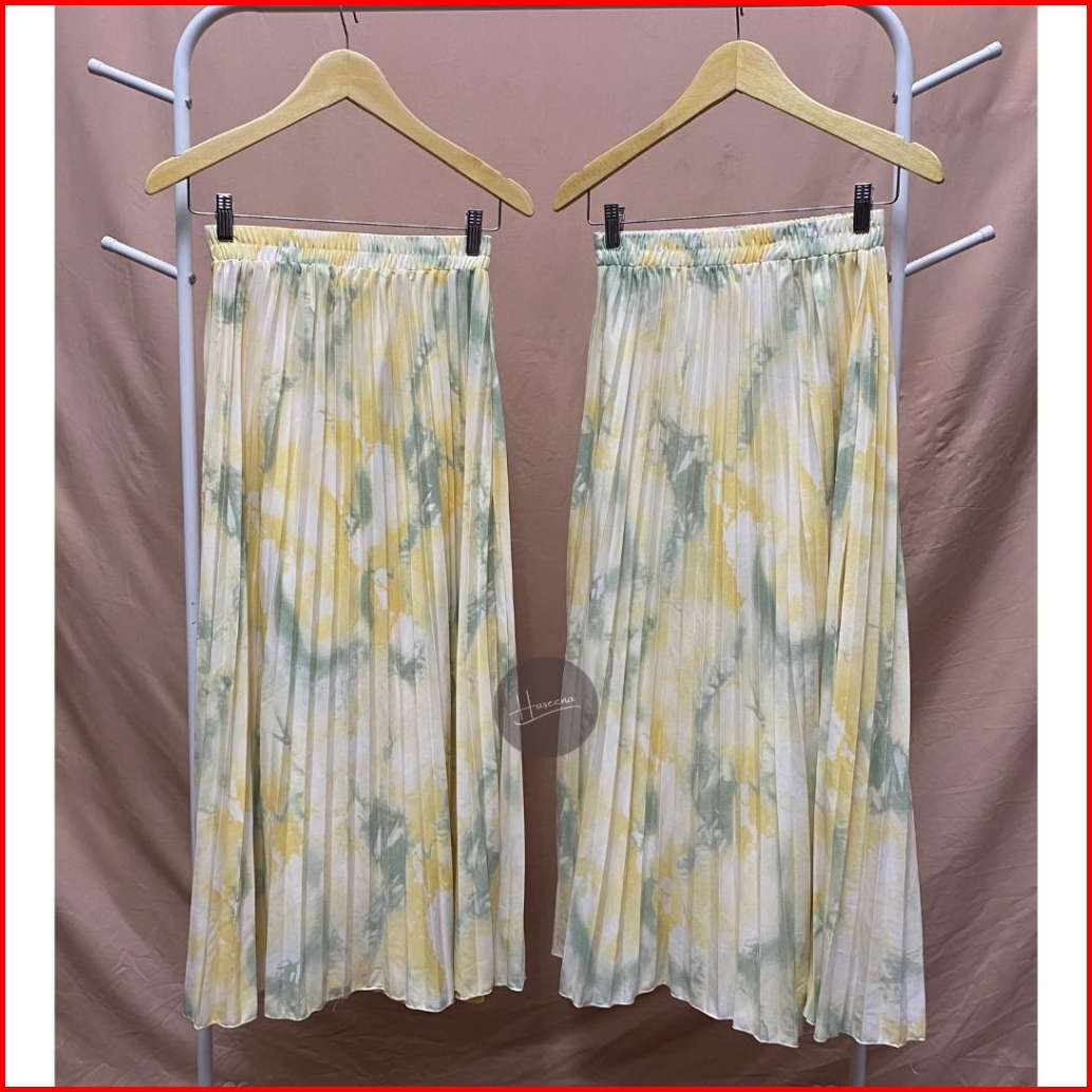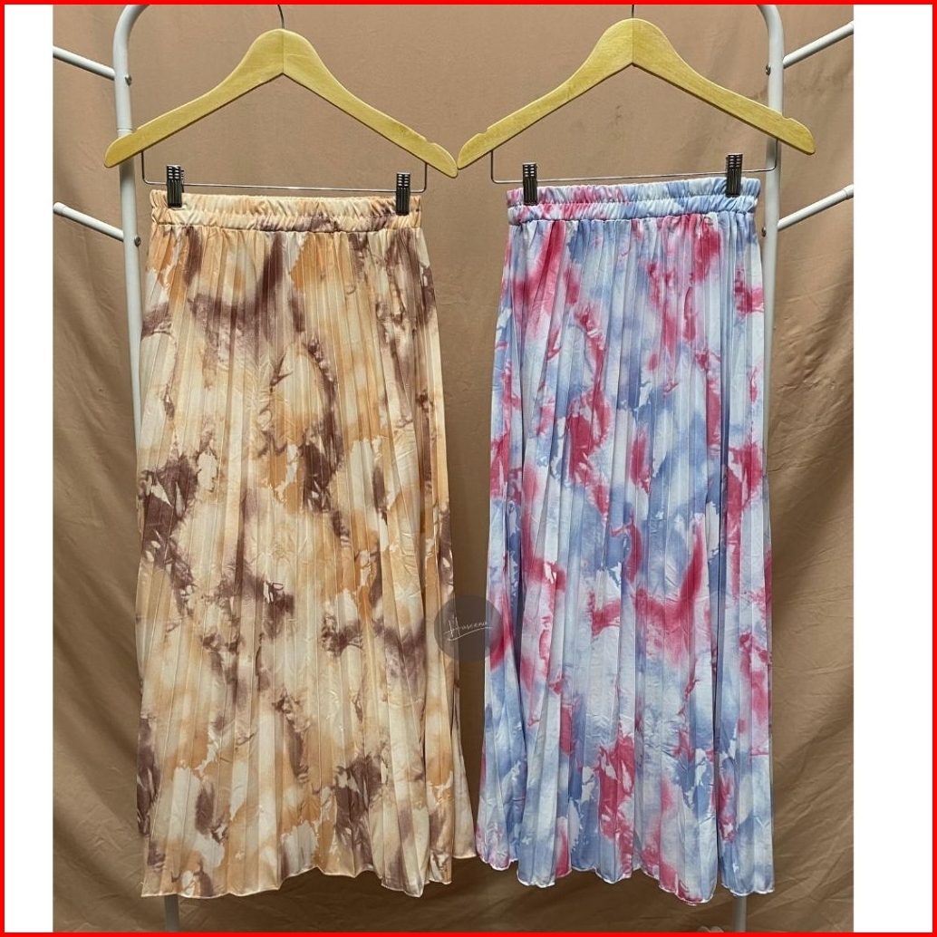 Limited Sale Haseena Bundling Deal Rok Plisket Marble Ceisya Tie Dye Skirt Free Stocking Hitam
