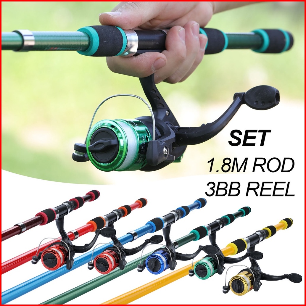 Sougayilang Joran Pancing Set 1.8m 6 Bagian Spinning Fishing Rod Reel Set Fiber Glass Telescopic Untuk Air Tawar Anak-an