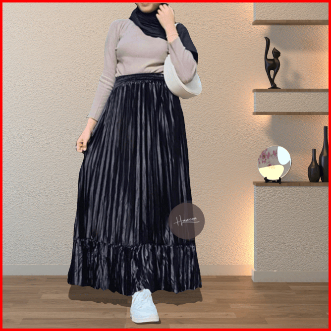Haseena Rok Plisket Susun Velvet Mafaza Mayung Bawahan Bludru Wanita Muslim Ruffle Pleated Skirt