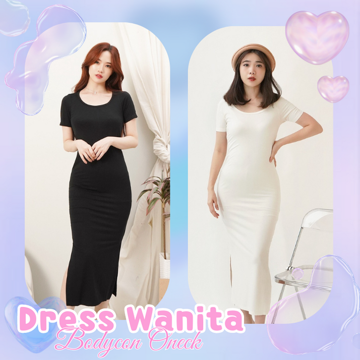 Dress Slim Bodycon Wanita Leher Bulat 6012