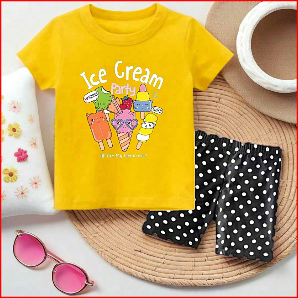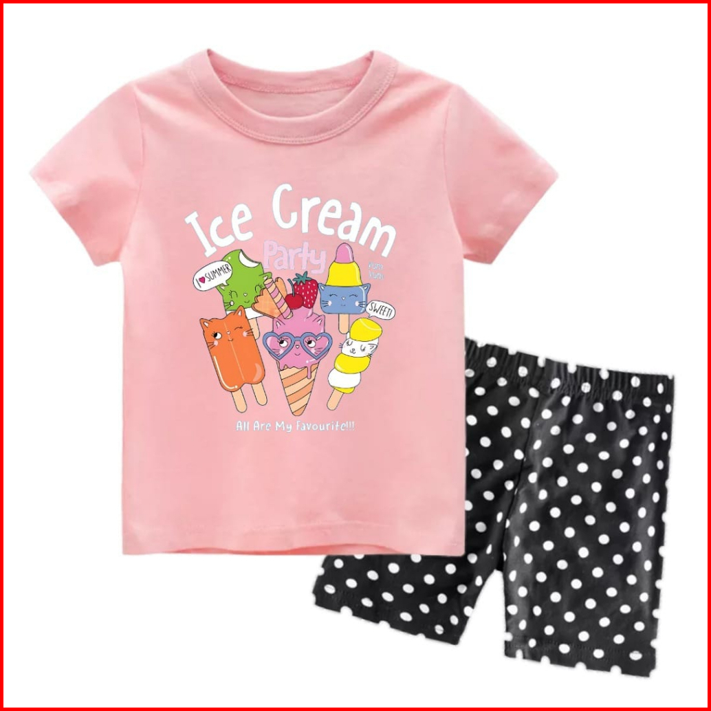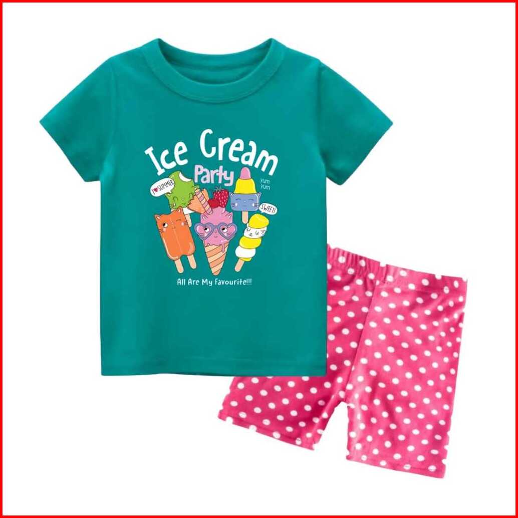 Set Baju Kaos Lengan Pendek Anak Perempuan Setelan Pdk Anak Cewek Motif Ice Cream Pdk