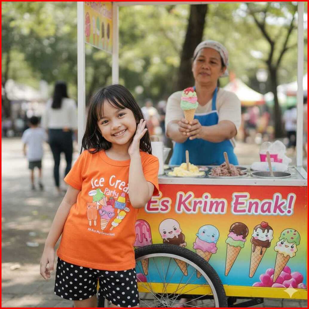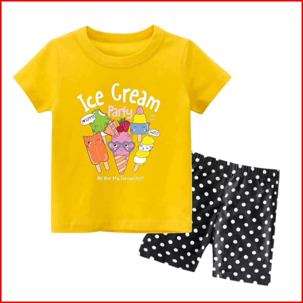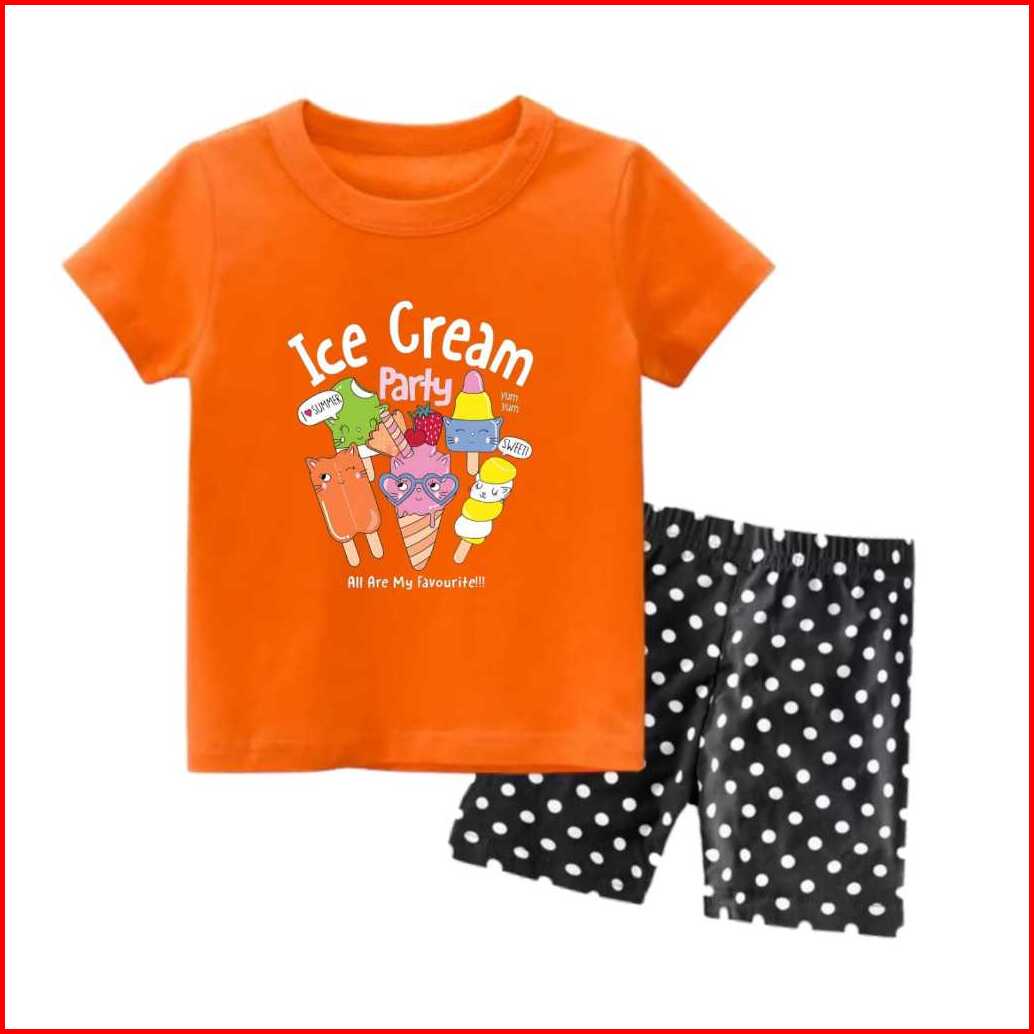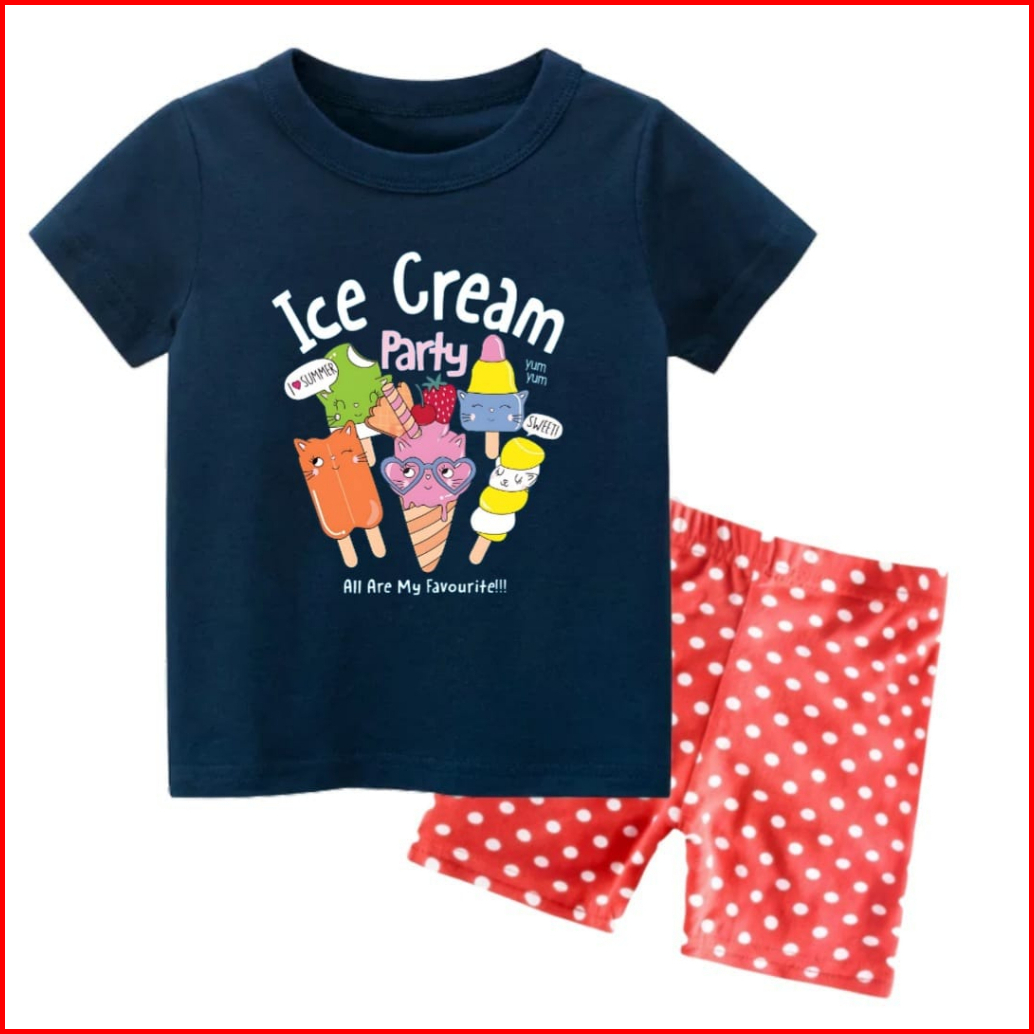 Set Baju Kaos Lengan Pendek Anak Perempuan Setelan Pdk Anak Cewek Motif Ice Cream Pdk