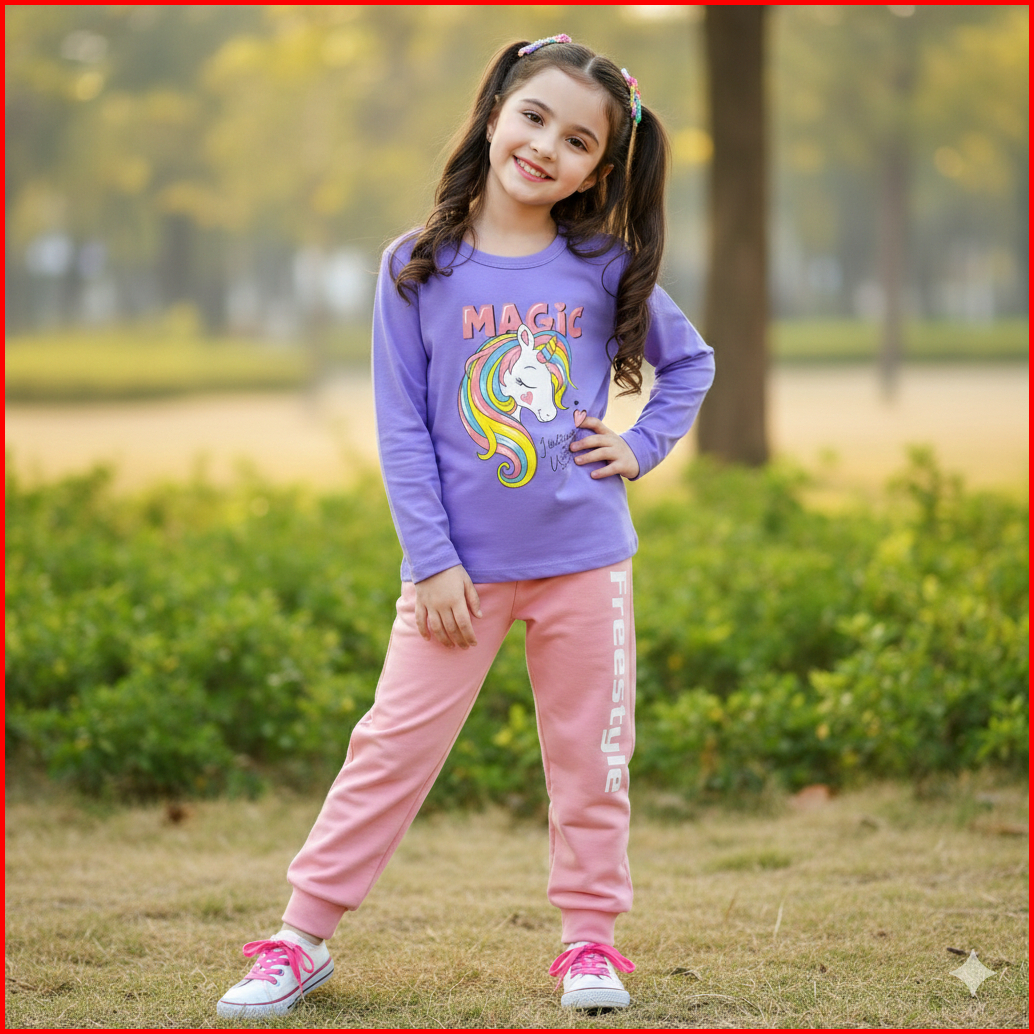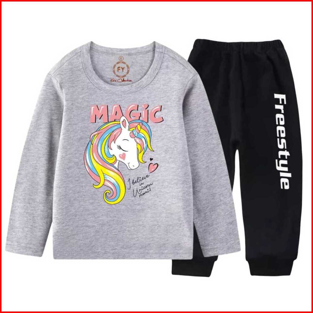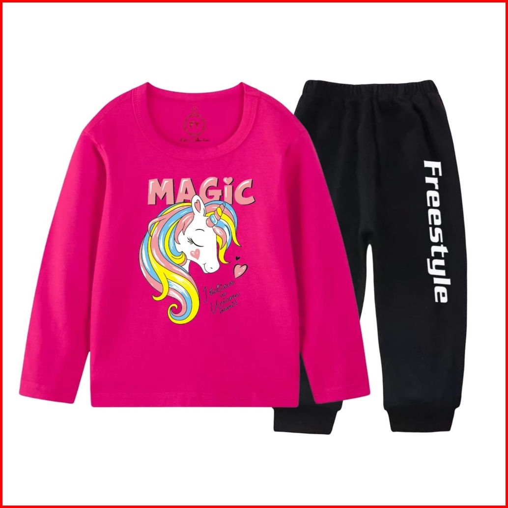 Setelan Panjang Baju Kaos Anak Perempuan Set Lengan Panjang Pony Magic