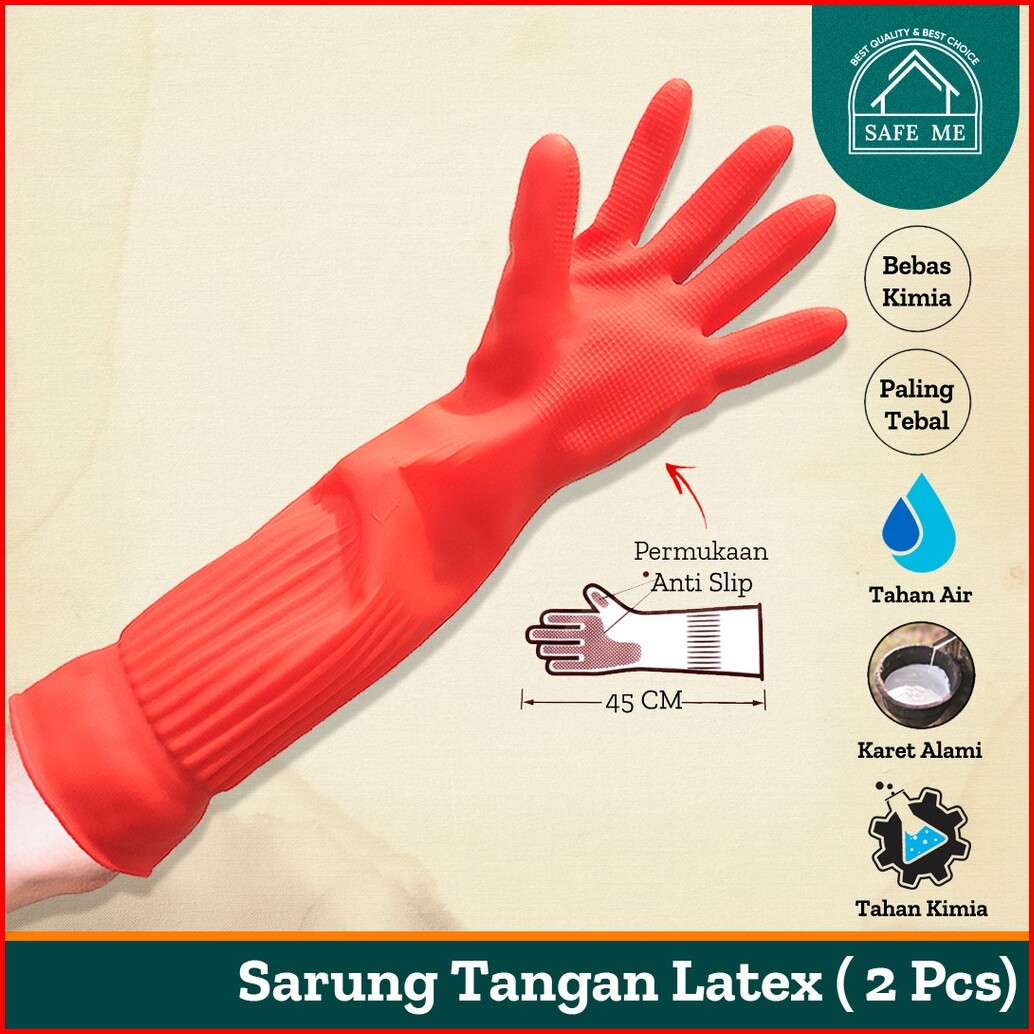 Sarung Tangan Latex Karet House Hold Gloves Orange Panjang Dan Tebal Industrial Gloves Latex