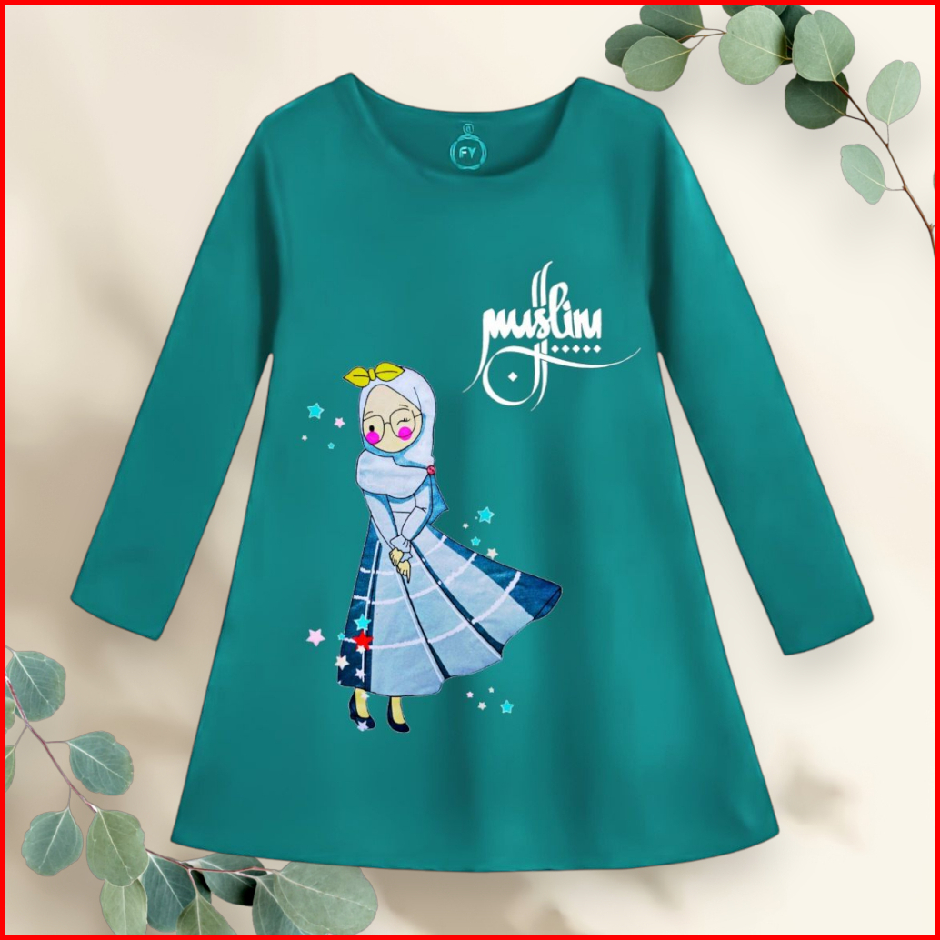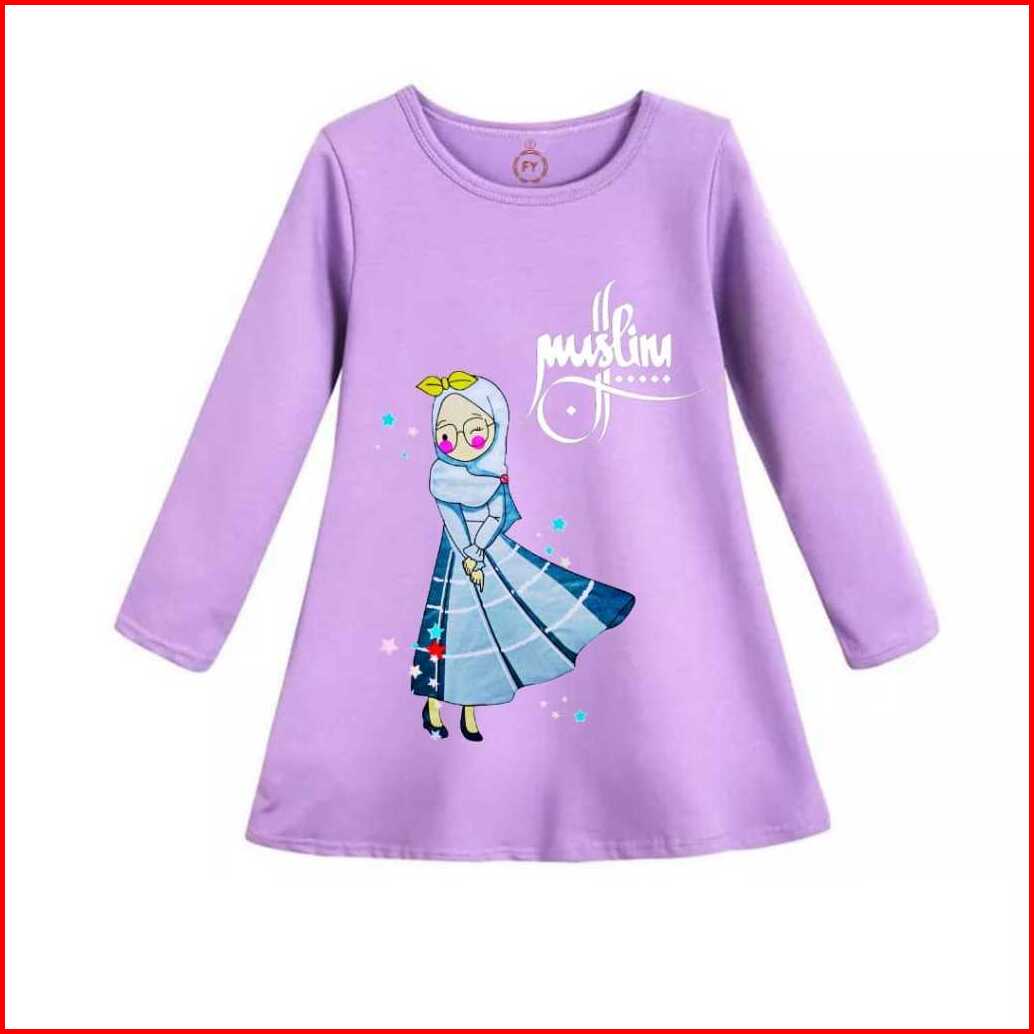 Tunik Anak Perempuan Dress Anak Kaos Daster Anak Cewek Motif Muslim 2-14th