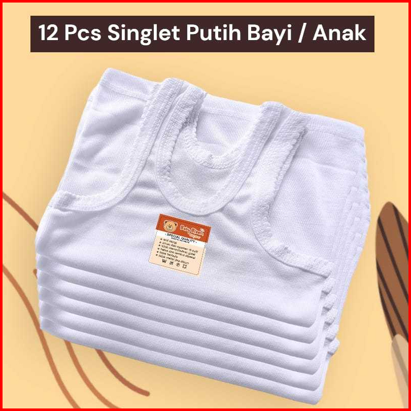 Baby Bloom Swan Baby Singlet 1 Lusin 12 Pcs Kaos Dalaman Singlet Anak Bayi Warna Size S-m-l-xl-xxl