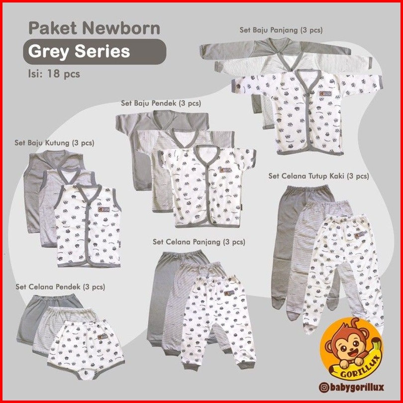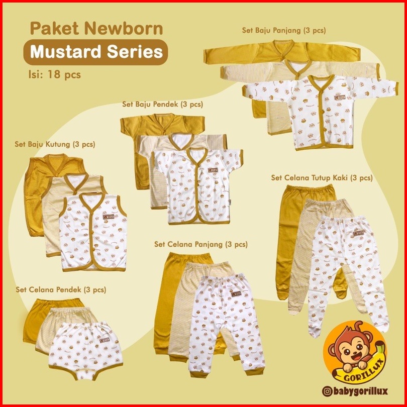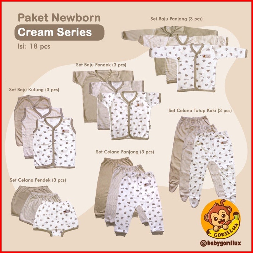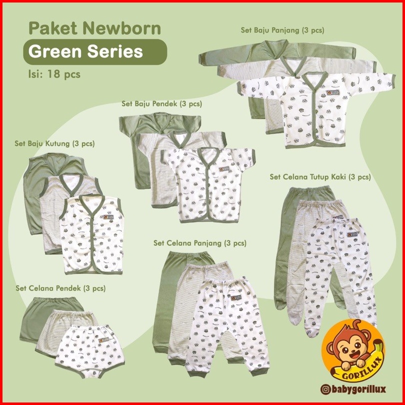 Gorilux Paket Baju Bayi 0-3 Bulan Premium Isi 18 Pcs Mustrad Khaki Army Series