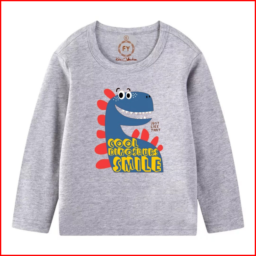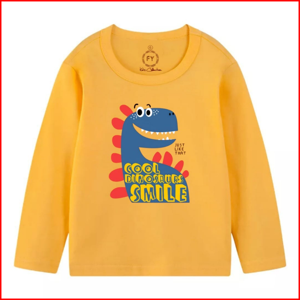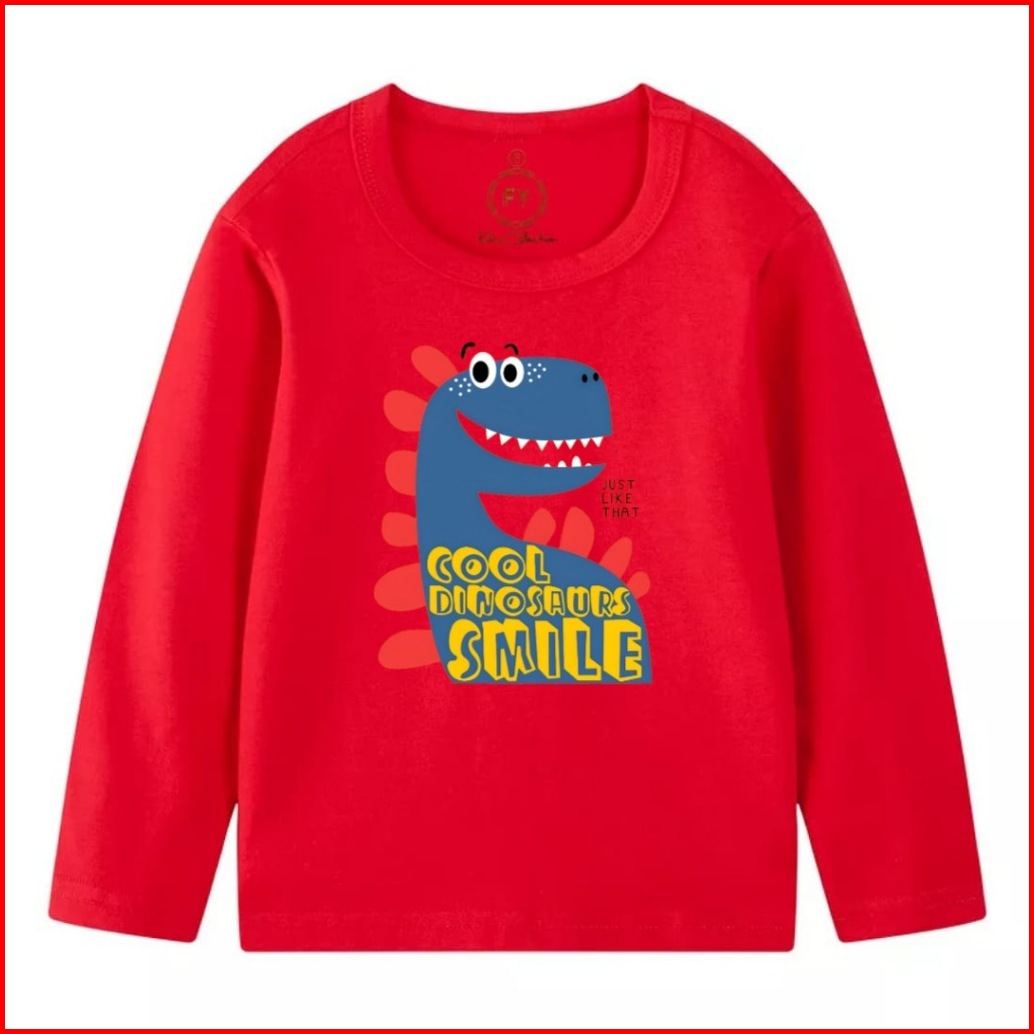 Atasan Lp Baju Kaos Anak Laki Laki Pakaian Harian Ootd Lengan Panjang Anak Laki Laki Motif Dino Oren