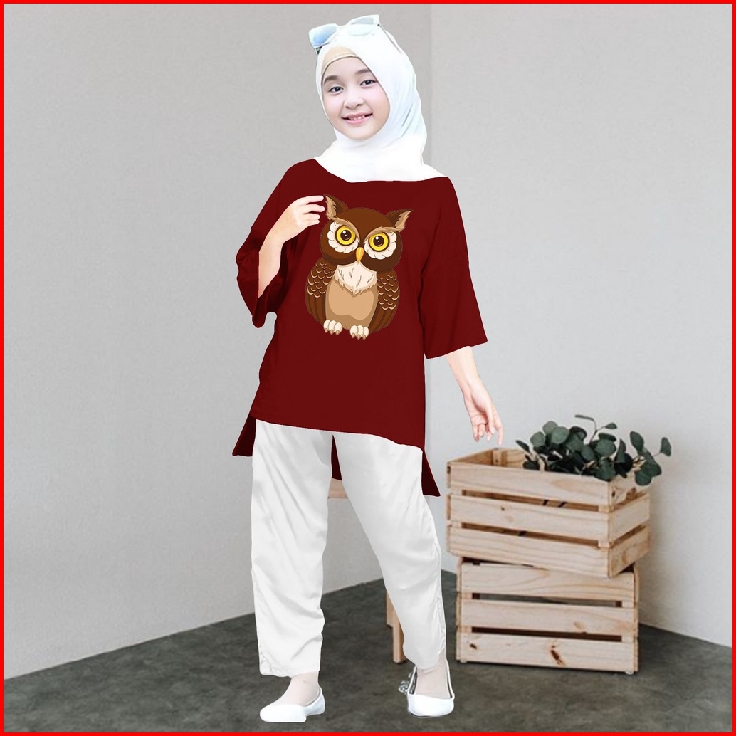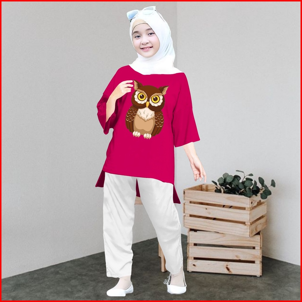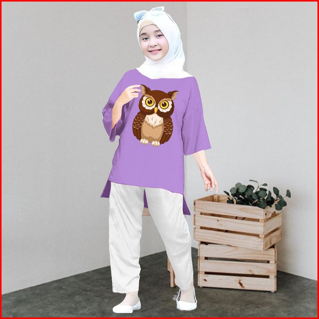 Kaos Oversize Anak Perempuan Owl V2 Usia 6-13 Thn Sablon Dtf