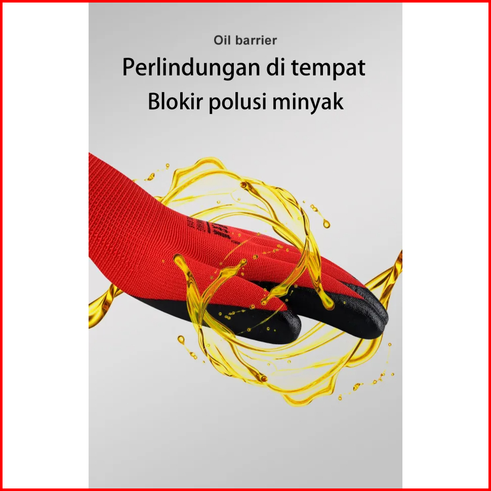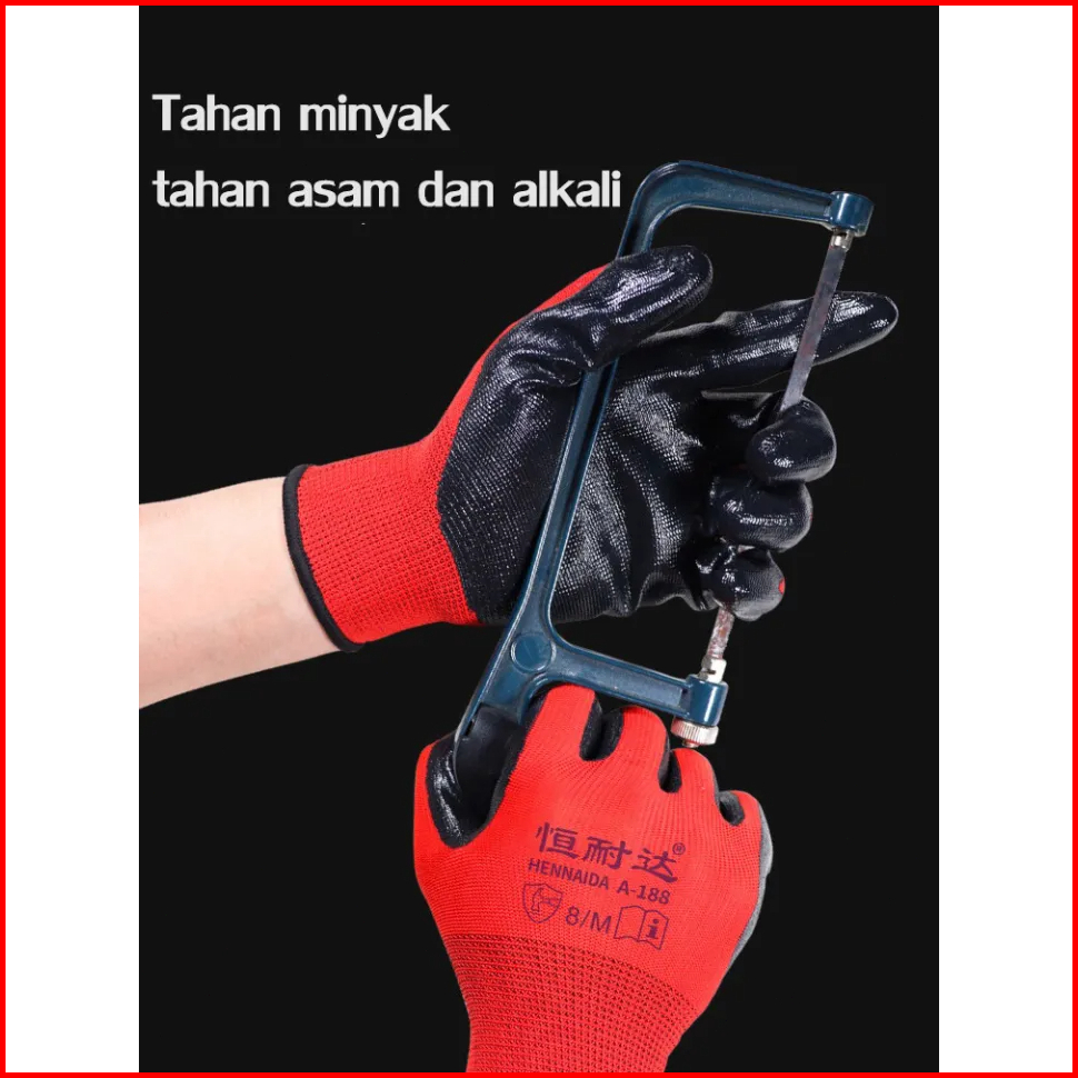 12pcs Set Sarung Tangan Safety Latex Hitam Oil Resistant Nitrile Stretchable Rubber Gloves Sarung Tangan Kerja Safety Sa