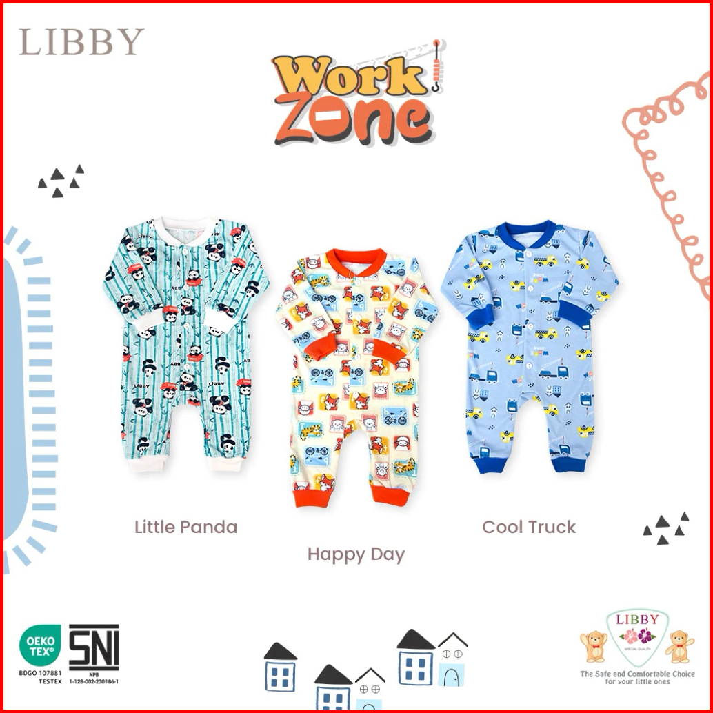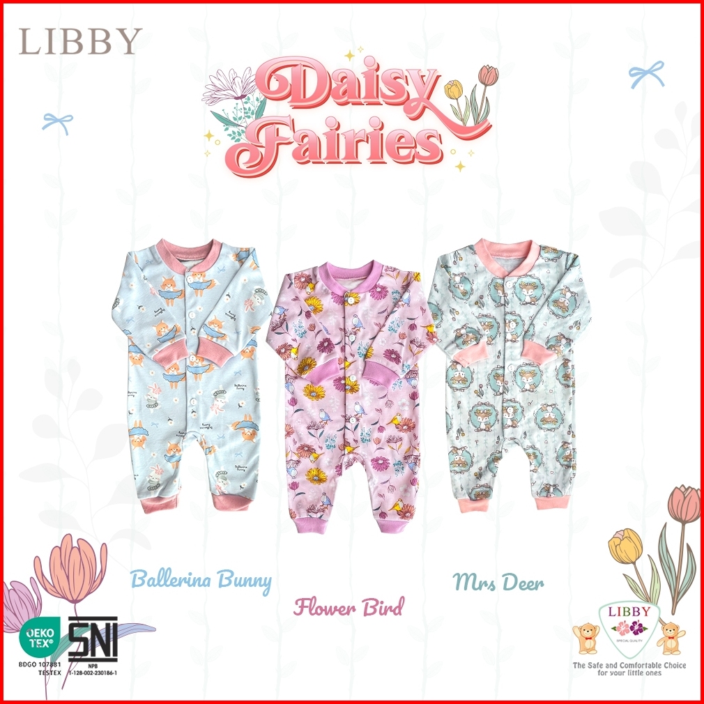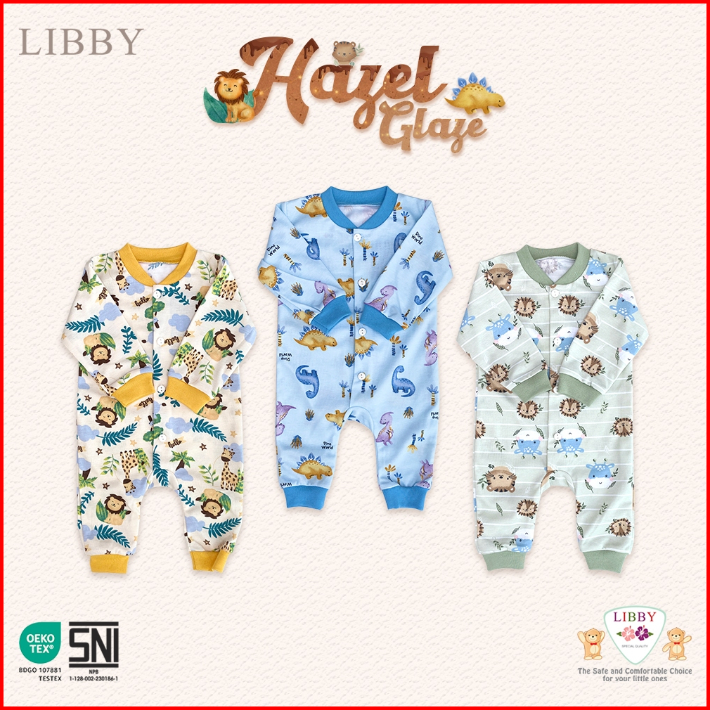 1 Pcs Libby Baju Kodok Panjang Jumpsuit Rib Bayi Baby Motif 0-3m Sleepsuit Bayi Buka Kaki
