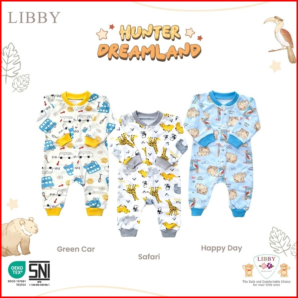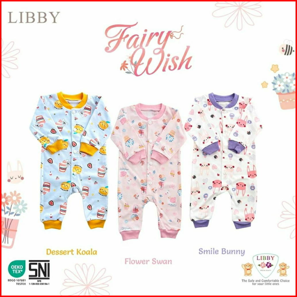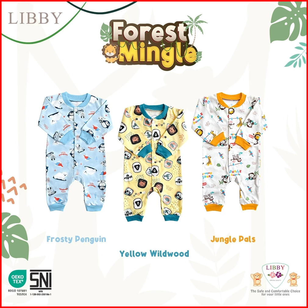 1 Pcs Libby Baju Kodok Panjang Jumpsuit Rib Bayi Baby Motif 0-3m Sleepsuit Bayi Buka Kaki