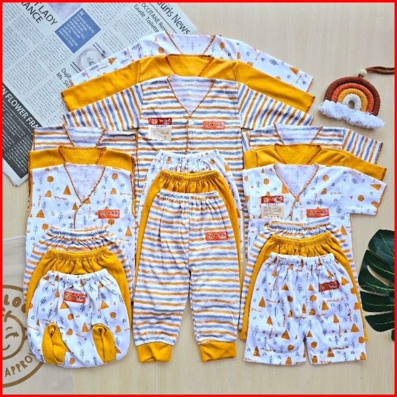 Baby Bloom Free Ziper Bag Serian Mustrad - 18 Pcs Paket Baju Bayi Celana Bayi Serian Mustrad Setelan Bayi Baju Bayi Newb