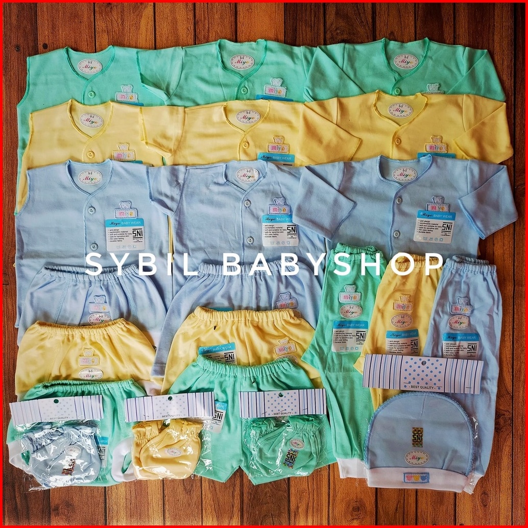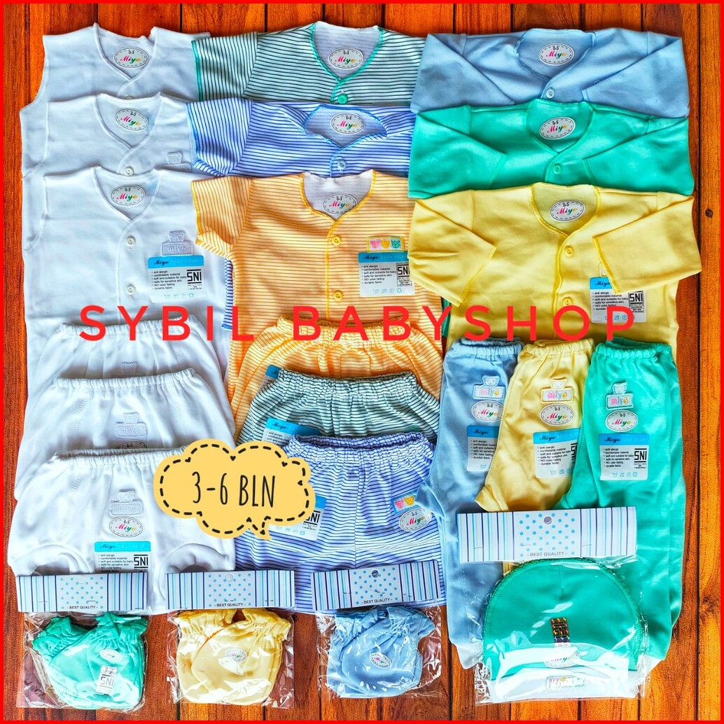 Paket Lengkap Baju Bayi Nb Miyo Mix Putih Salur Warna 0-6 Bln Isi 31 Pcs Kado Bayi